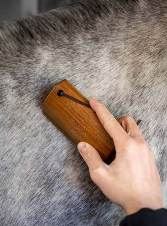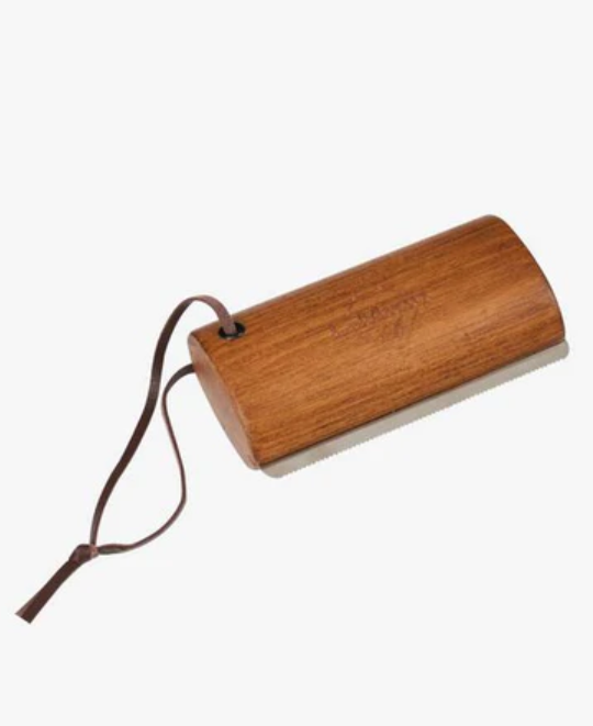 LeMieux Artisan Shedding comb er en fældestrigle, som er en del af LeMieuxs super lækre strigleserie. En genial og handy strigle, som hjælper til at affælde den langhårede pels. Ergonomisk træhåndtag og læderstrop der kan bruges om håndled, så man ikke så nemt taber den. Striglen er forsynet med en metal "savklinge" som fjerner det løse hår.