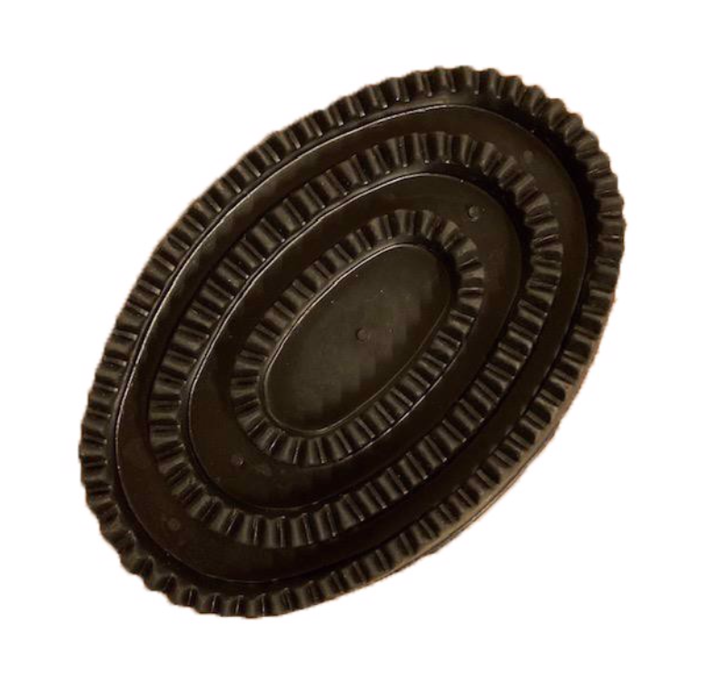 Oval gummi gnubber med hank. 16 X 10 cm.