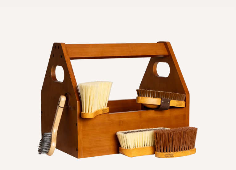 Her år du den ultimative kasse til strigler og plejeprodukter. Kassen vil se smuk ud i alle stalde og er også praktisk til stævnestalden. Grooming Deluxe står for deluxe produkter til din stald og din hest. Det er Kentuckys brand, og deres produkter som denne kasse er fremstillet af bambus.