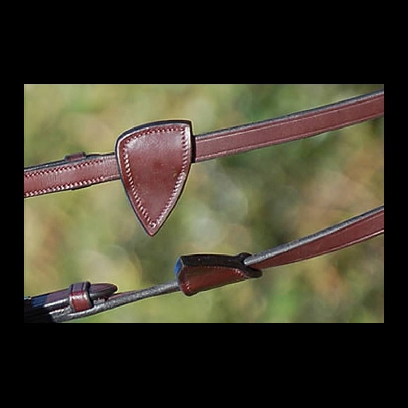 Dyon huntertøjle med stoppere fra New English-kollektionen. Tøjlen er af blødt, engelsk læder, og indersiden, hvor du holder, er med det såkaldte "huntergrip", hvor tøjlens læder er linet med rillet gummi, så du får et rigtig godt greb om tøjlen. Martingale-stopperne og stopperne på tøjlen er ligeledes af engelsk læder, og syningerne matcher læderets farve. Spændet er i rustfrit stål.