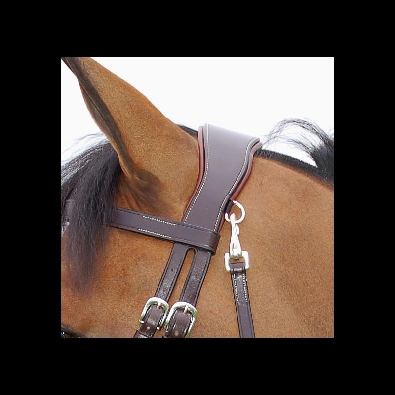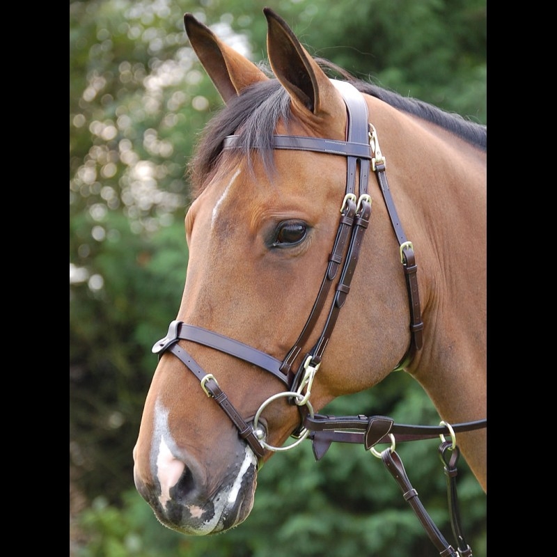 Dyon Working Flat Flash trense med kombineret næsebånd og klips til påspænding af bid og ved kæberemmen; nu med spænder og klips i messing. Trensen er lavet i lækkert bøffellæder, og den har et anatomisk polstret nakkestykke for optimal pasform og komfort for hesten. Den har fladt næse- og pandebånd, hvor den nederste næserem er aftagelig. Trensen har lyse syninger og spænder i messing for et traditionelt Dyon-look.