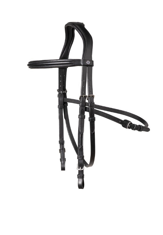 TRUST Hickstead hackamore trense som passer flot sammen med de forskellige hackamore kombinationsbid fra Trust. Trensen passer selvfølgelig også til andre typer hackamore bid. Hackamore trensen gør livet nemmere: det gør det bare så meget nemmere, hvis man har en hest der har behov for at bruge hackamore nogle dage og almindeligt bid andre dage, at man har en hackamore trense, for så behøver man ikke at bytte rundt på bidene og indstille trensen hver gang. Trust Hickstead hackamore trense har en ekstra kæberem, som hjælper trensen til at blive siddende på plads, når der rides med hackamore. Trensen er fremstillet af det blødeste og lækreste europæiske læder. Nakkestykket er virkelig blødt og anatomisk udformet med lækker blød foring. Nakkestykket er skåret tilbage så der er god plads til ørerne. Foringen under nakkestykket er virkelig blød og behagelig uden at være for tyk, således at kontakten til hesten sikres.