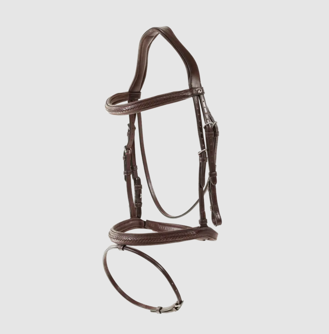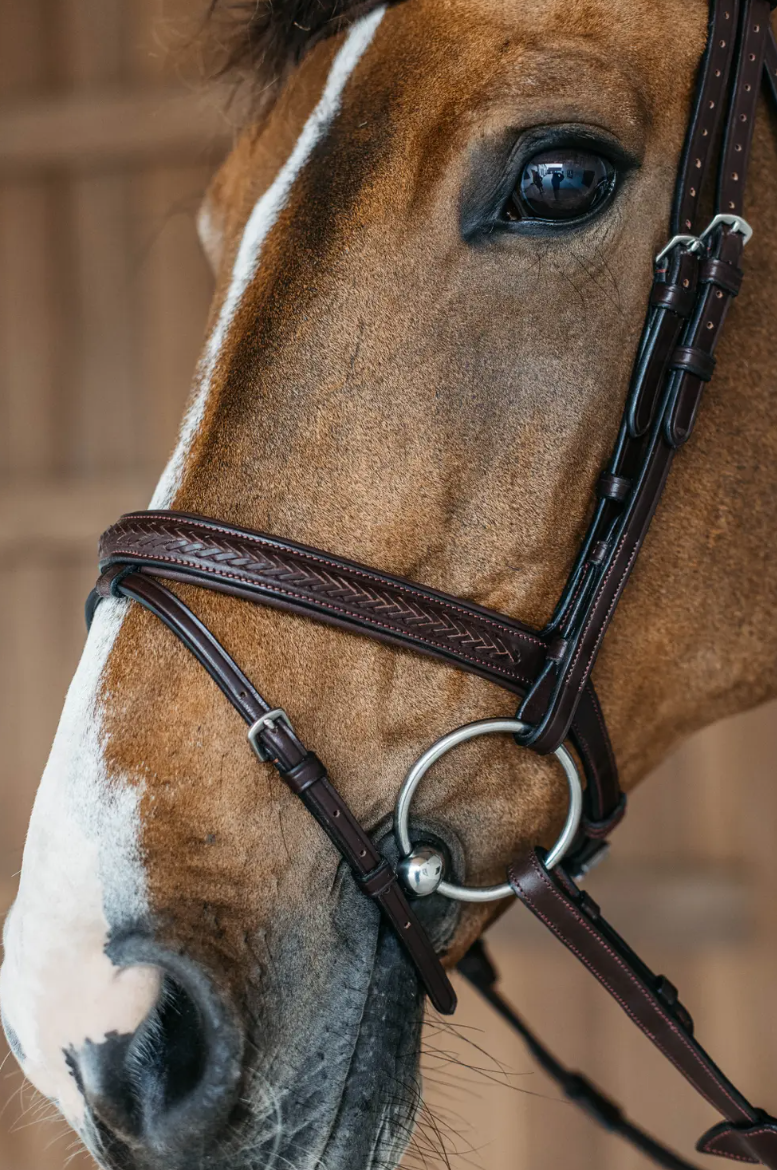 Dyon Plaited Flash noseband - lædertrense med smukke flettede detaljer på pandebånd og næsebånd. En virkelig klassisk trense med unikt look. Anatomisk udformet nakkestykke med god plads ved ørerne. Udformning og detaljer ved denne trense sikrer optimal funktion under ridning. Lækker New English læderkvalitetslæder.