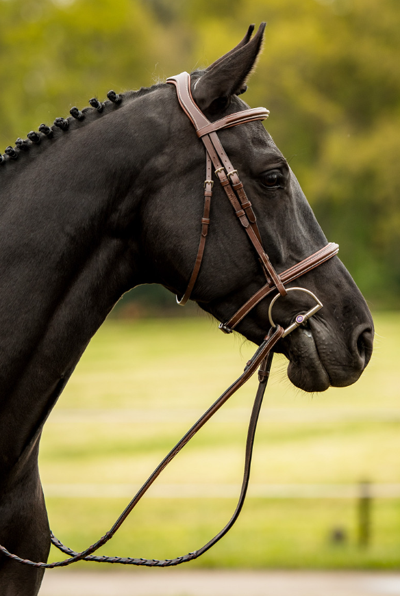 Trust Kentucky hunter trense i super lækkert blødt læder. Trust Hunter trensen Kentucky er elegant og med fine cremefarvede syninger på pandebånd og næsebånd. Pandebånd, næsebånd og nakkestykke har en blåød og lækker foring og selve læderet på trensen er super blødt også fra første gang du bruger den. Nakkestykket er anatomisk udformet med plads til ørerne.