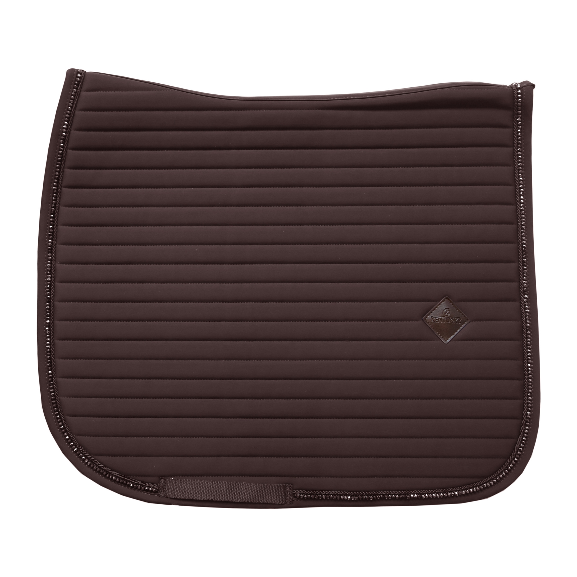 Dette underlag fra Kentucky er ualmindelig flot og samtidig meget enkelt. Den vandrette kviltning giver et eksklusivt look - overfladen på underlaget er glat og de flotte perlesten bidrager til, at dette underlag oser af luksus. Kentuckys Pearls Show underlag fås i brun, sort, hvid og navy og kun i str full. Skriv endelig, hvis der er særlige ønsker til Kentuckys produkter- vi er gerne behjælpelig med at bestille noget hjem, som vi ikke har på lager. (Billederne her af sort og navy er godt nok springunderlag- men ellers er de magen til).