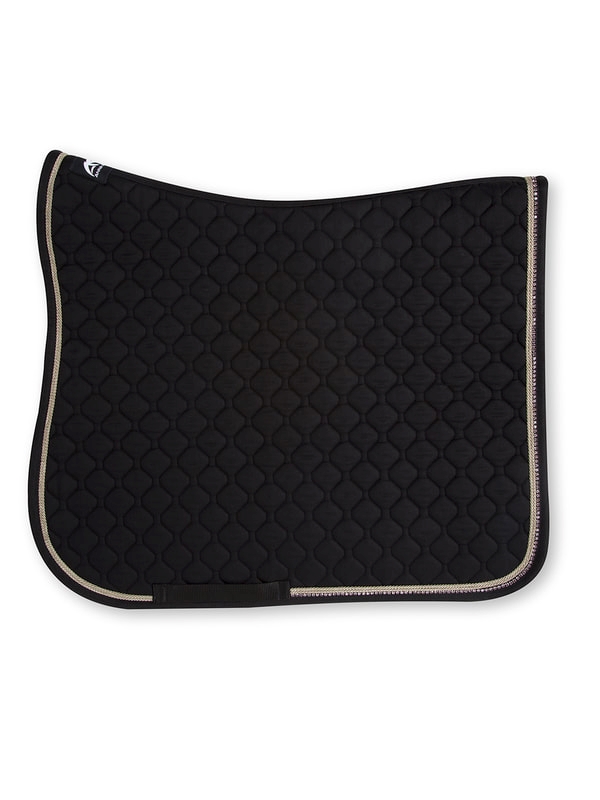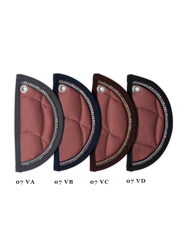 Quer 07 er et smukt kviltet underlag med super pasform og i høj kvalitet, fremstillet i Italien og en del af Anna Scarpatis vinterkollektion 2019. Dette underlag har 2 pipes og en kant med krystaller. Det oser af eksklusivitet. Farverne i vinterkollektionen 2019 er virkelig smukke og unikke. Der er 4 farvekombinationer i kanter/pipes som ses på billedet som version A-C. Selve underlagene med denne dekoration fører Tattersall i sort, støvet olivengrøn samt gammelrosa.