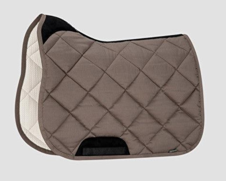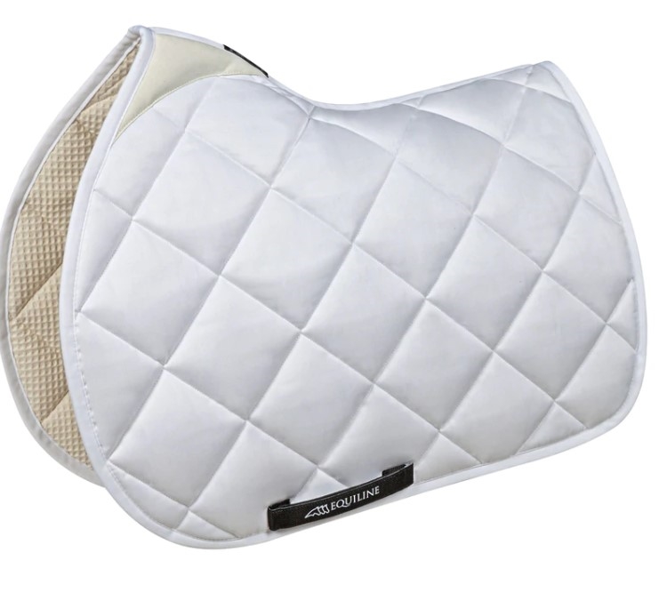 Super lækkert underlag som findes i spring og dressur. Equiline laver virkelig gode underlag som ligger godt og er af super kvalitet. Dette underlag er med store kviltninger, vaflet underside og med ekstra god udskæring og pasform ved mankestykket. Forstærkning ved mankestykket, så der både er god plads, stødabsorbering samt slidstærkt. Materialet udvendigt er en lækker bomuldsblanding og underlaget er polstret med vat af bomuldsuld som virker stødabsorberende og som er åndbart. Equiline anvender materialer som er antibakterielle og allergivendlige.