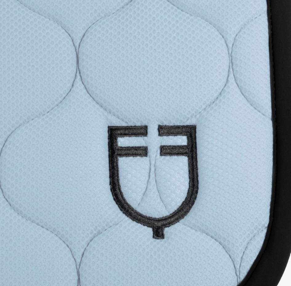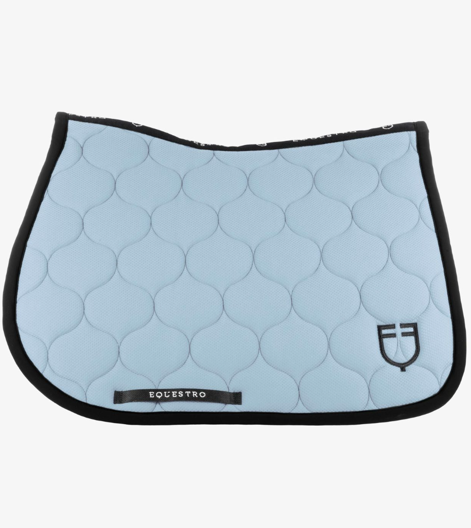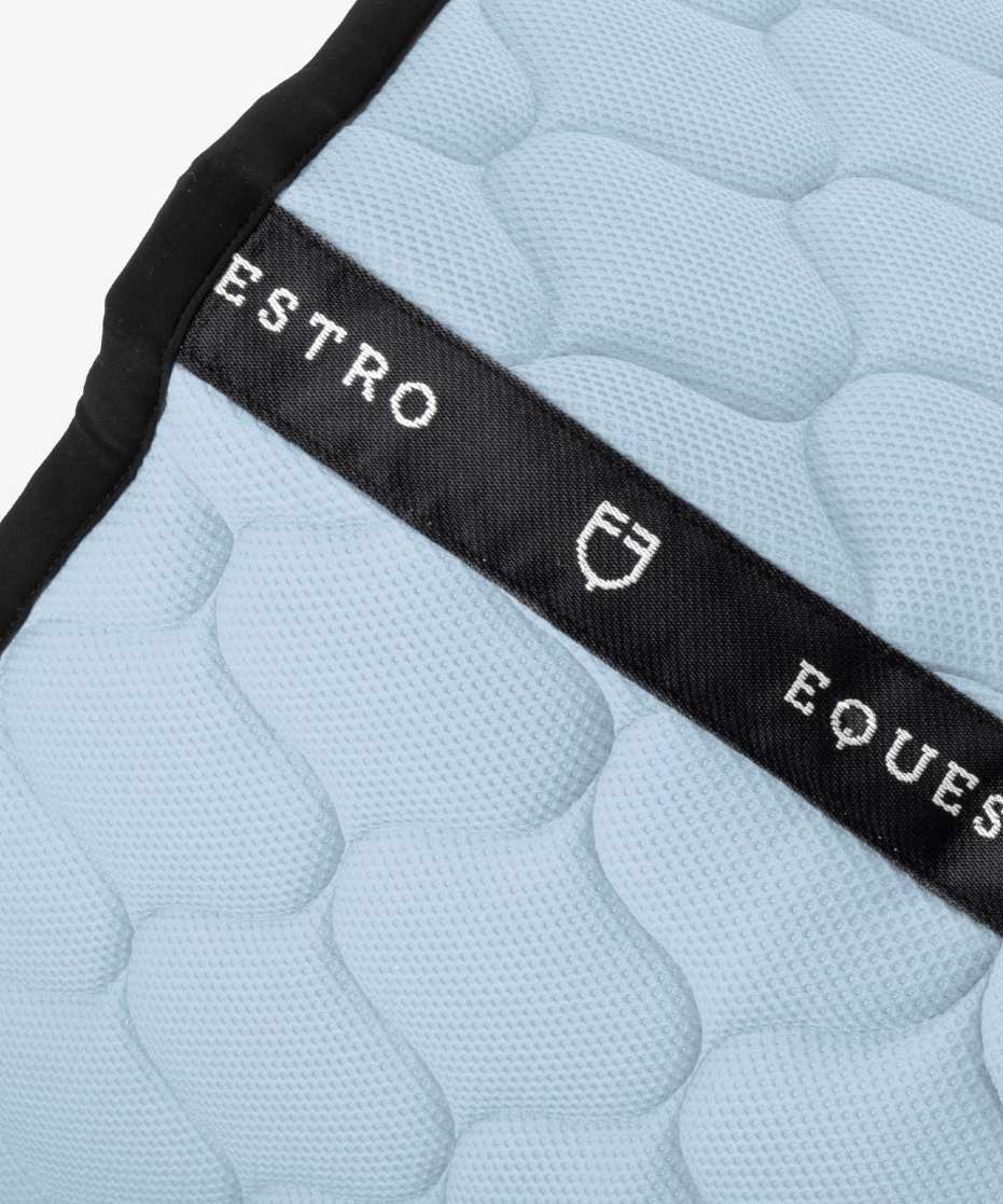 Equestro underlag i lækker mesh kvalitet. Velsiddende og meget behageligt for hesten/ponyen. Dette er med sort kant og logo.