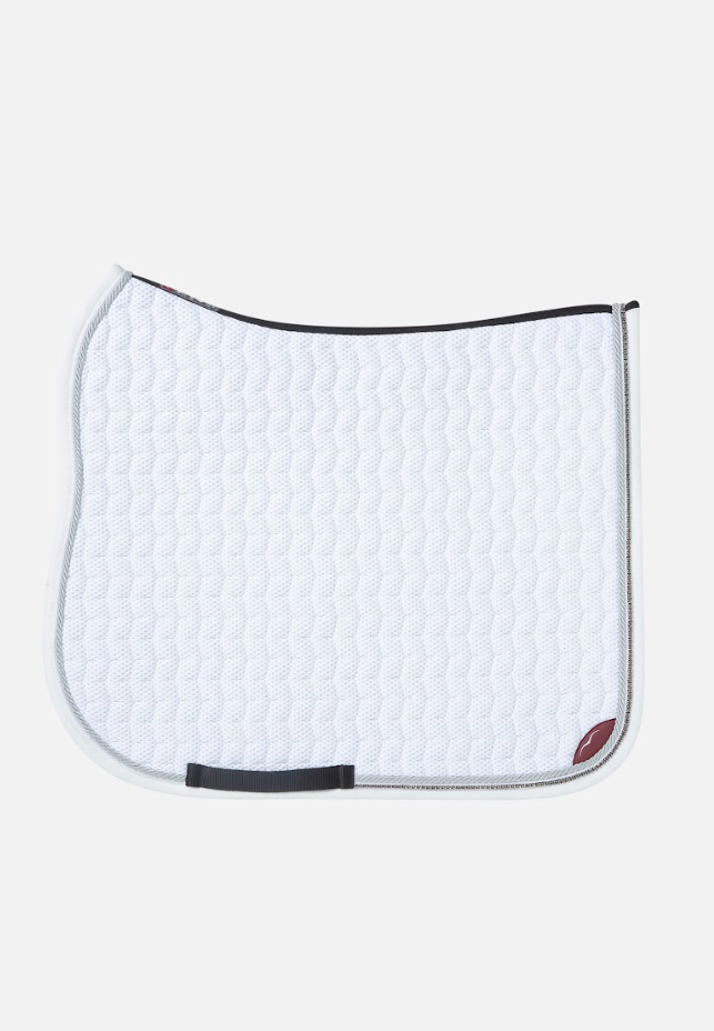 Animo Wayaba sadelunderlag i det lækreste åndbare meshmateriale med stødabsorberende fyld. Et lækkert og tyndt luksusunderlag til din hest, som sikrer god åndbarhed under arbejde. Animos underlag er utrolig velsiddende. Dette underlag er pyntet med klare sten og en pipe i grå kontrastfarve.