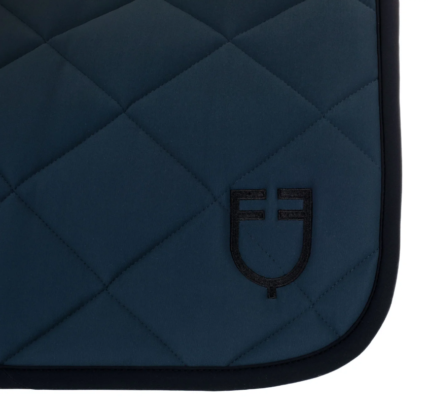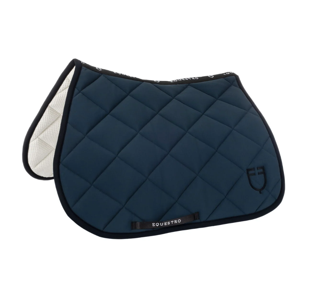 Super lækkert sadelunderlag fra italienske Equestro. Dette er blødt og lækkert med vaflet underside og sort kantebånd og broderi også i sort. Equestro laver velsiddende underlag som er åndbar. Et godt valg til din pony eller hest. Findes i mange forskellige farver.