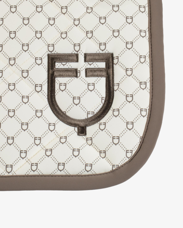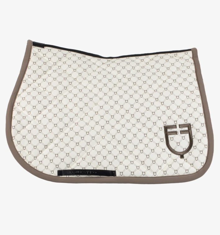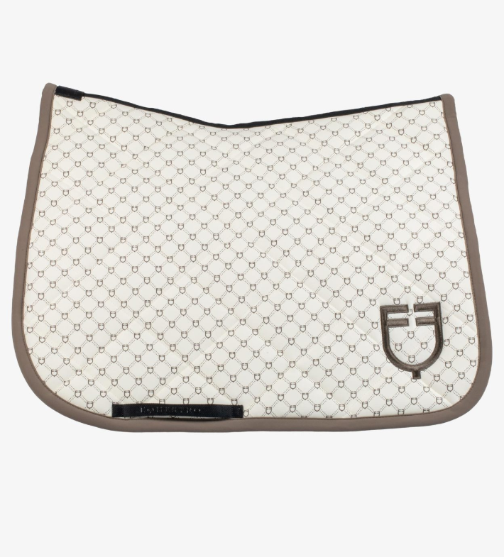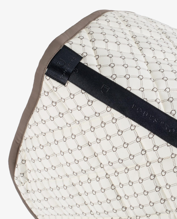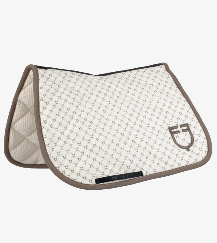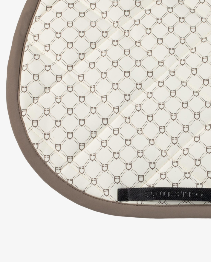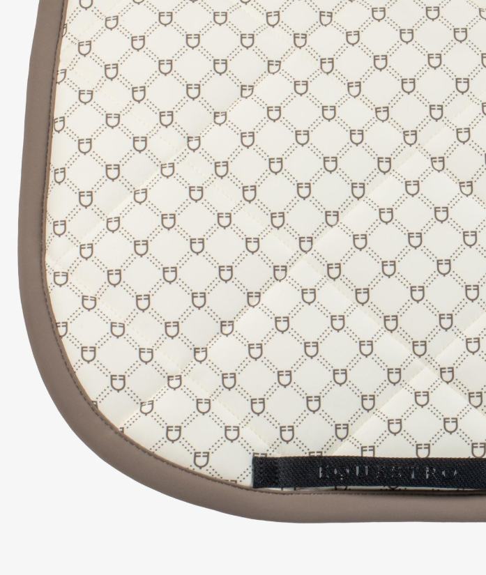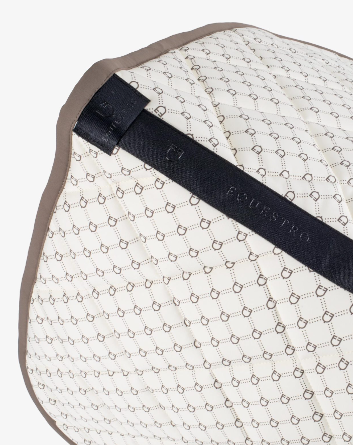 Equestro sadel underlag fremstillet af de lækreste materialer - det er åndbart, velsiddende og behageligt for hesten at have på. Underlaget at anatomisk uformet som både sikrer at det ligger godt og at hesten har bevægelsesfrihed over ryggen. Det fine monogram print giver et ekslusivt udtryk og det store broderede logo er flot i kontrast og i samme farve som kant og logo.