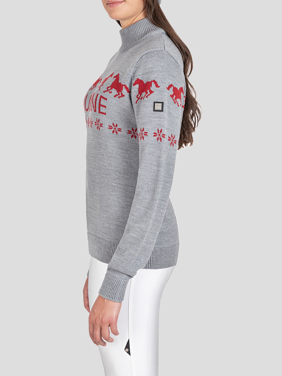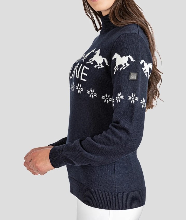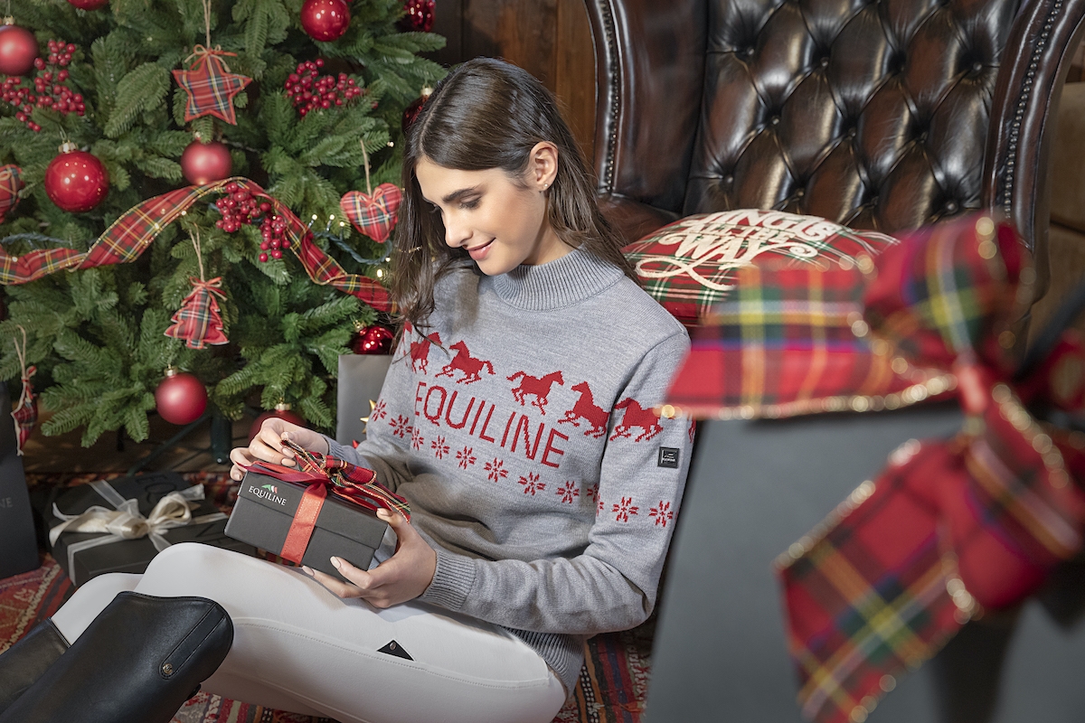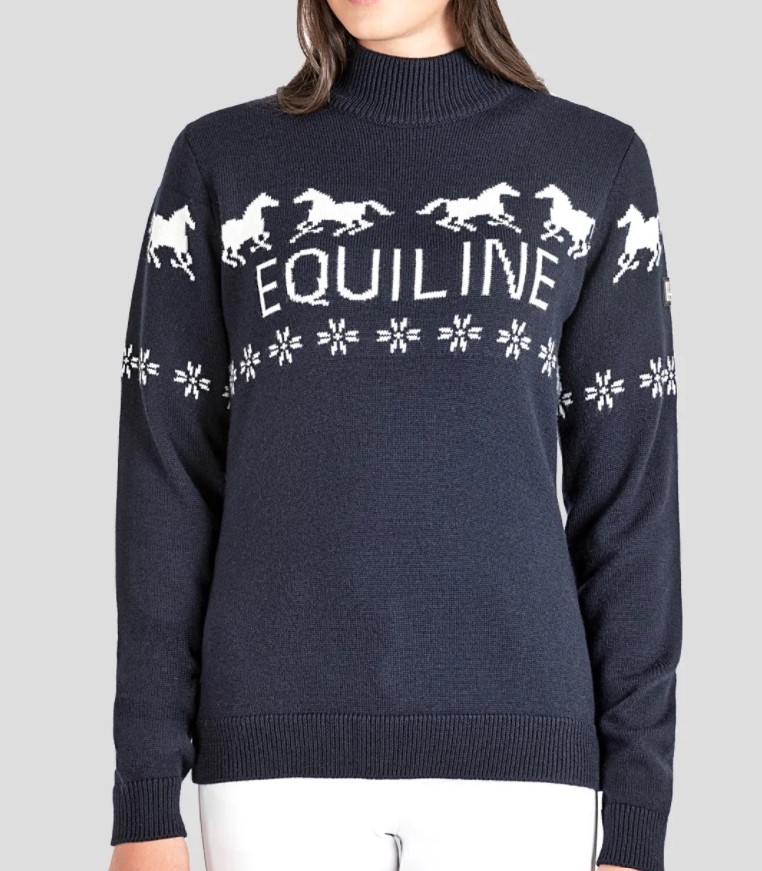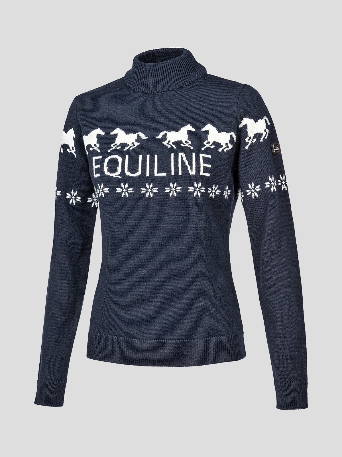 Equiline Rudolph strik: Med denne sweater kan du sikre dig både hygge og varme. Super lækker blød strik i 50% merino uld. SÅ kan de kolde måneder bare komme an.