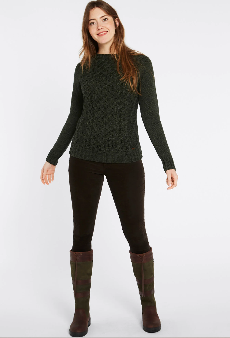 En outdoor sweater der vil noget: Dubarry Shanley merino sweater i lækker blød merino uld! Super klassisk og stilfuld og så vil den holde dig godt varm. Hvis du leder efter en strik til de kolde månder som er lækker, blød og ikke alt for stor og tung, så er dette din kommende yndlingssweater! Dubarry Shanley sweater er fremstillet i Irland af 100 % merino uld. Ulden kommer fra certificerede farmere med med "Responsible Wool Standard" anerkendelse som sikrer, at fårene er opvokset og behandlet på ansvarlig vis. En stiled strik til den afslappede weekend, til rideturen i skoven eller til jagt eller hundeluftning. Mulighederne er mange.