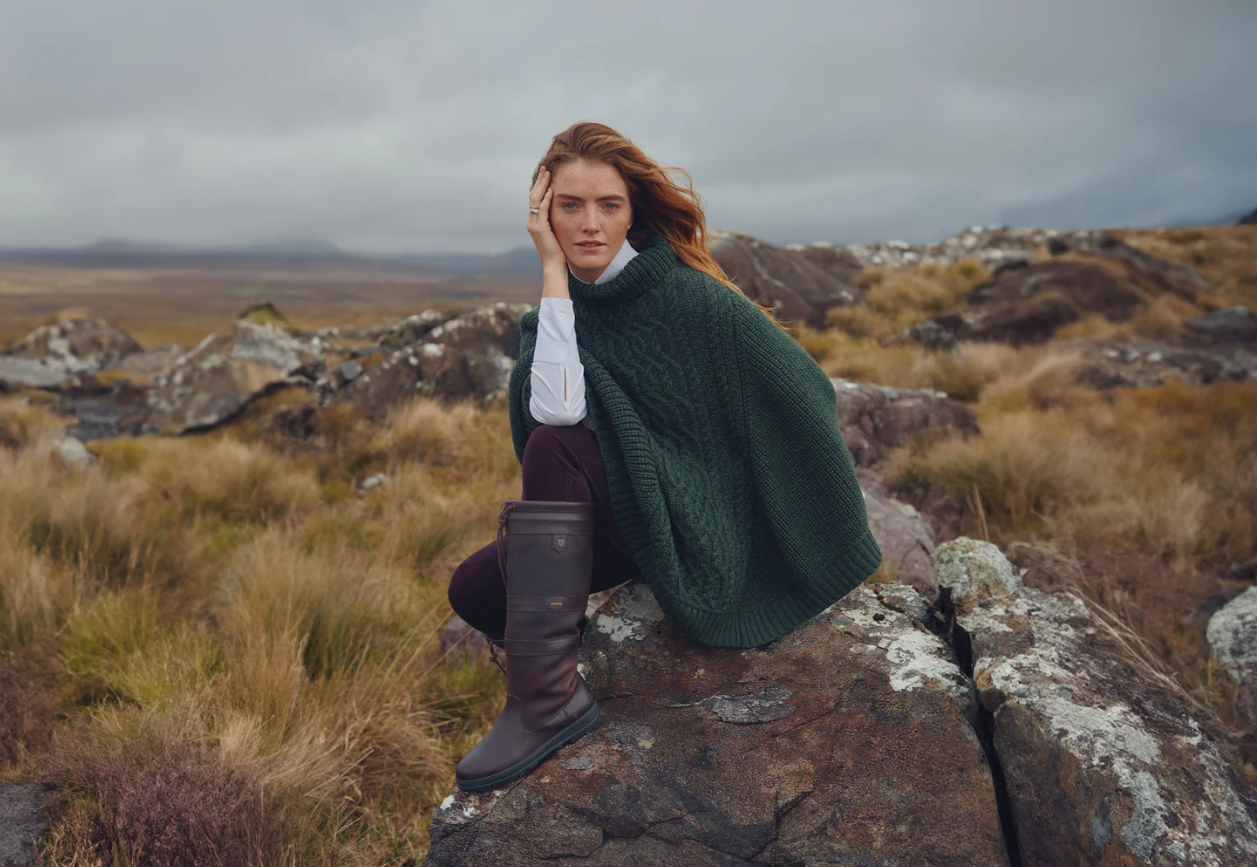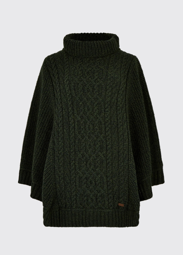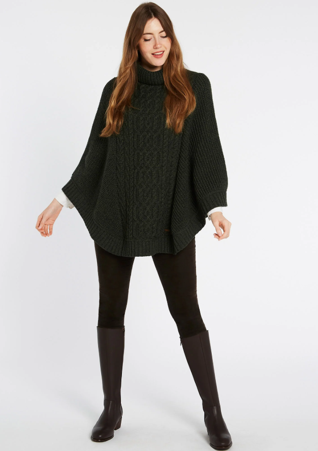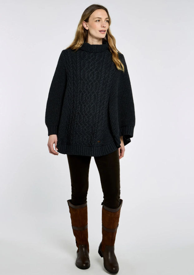 Dubarry Kilronan poncho: Hold varmen med stil! En sammensmeltning af den lækre sweater og en elegant poncho i den lækreste strikkvalitet. Tag ponchoen på i skoven, i sommerhuset eller på slentretur med pigerne i gågaden?