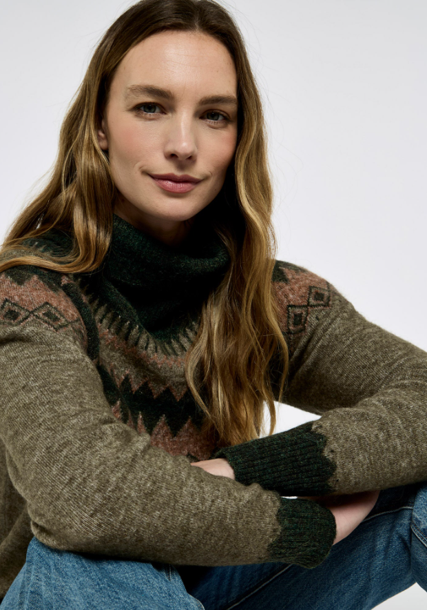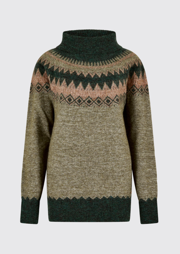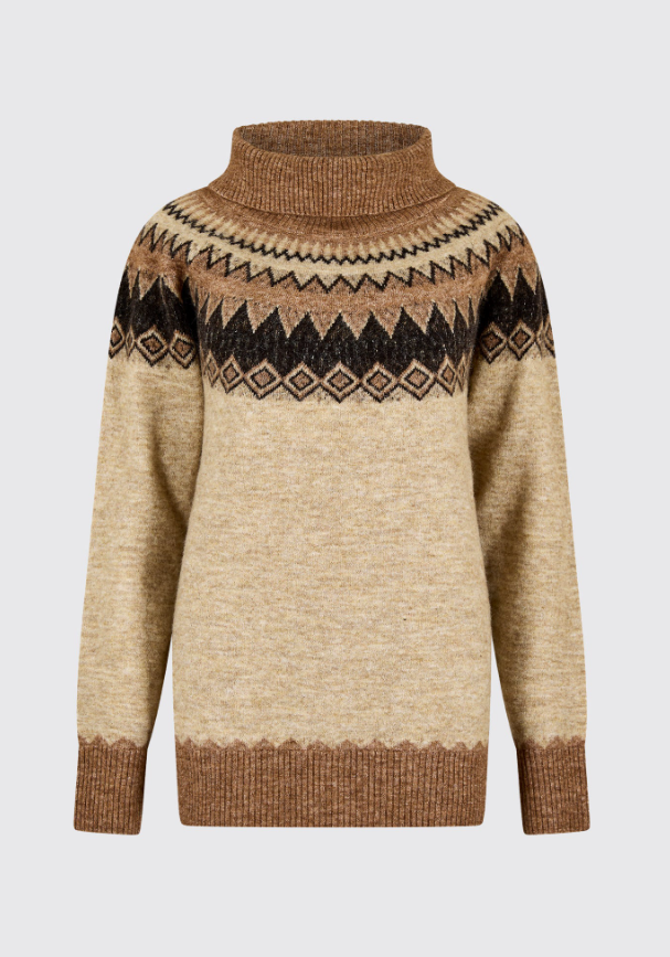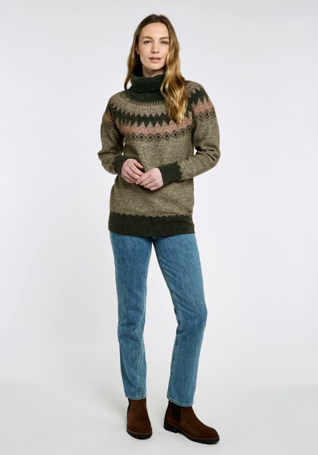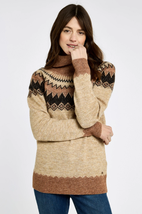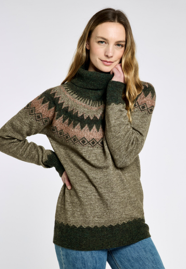 Dubarry Devlin er en nem og luksuriøs sweater der kan bruges til hyggedage i naturen, på skiferien eller på hesteryg. Ligegyldig hvor du færdes, så vil den kunne bruges på de kolde dage i vintermånederne. Garnet er blødt og lækkert og en alpaca blanding som giver god varme men som stadig kan vaskes i maskinen. En virkelig lækker sweater med smukke farver som passer til både jeans, fløjlsbukser, nederdele mm. Match stilen med et par lækre Dubarry støvler eller måske et par western boots?
