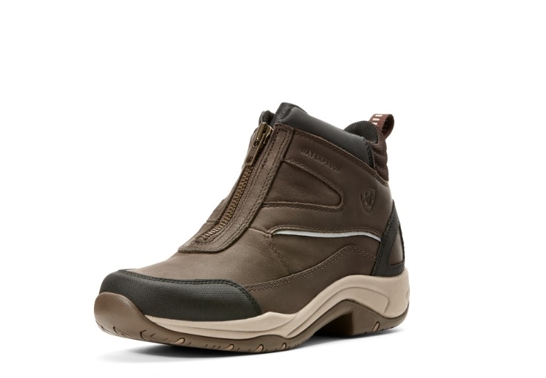 Ariat Telluride Zip H20. En vandtæt nyhed fra Ariat som mange nok vil synes godt om. En virkelig populær vandtæt støvle fra Ariat og nu altså også med lynlås i stedet for den velkendte med snørre. Denne støvle er parat til de lange distance hvadenten det er til fods eller til hest. En virkelig behagelig støvle som er opbygget efter alle kunstens regler. Anvendt af mange ryttere til rideferier, vandreture og udendørsridning samt andre aktiviteter. Læder med Waterproof Pro membran. Foringen er fugttransporterende. YKK® lynlås og stødabsorberende sål. Duratread ydersål som både giver flexibilitet samtidig med at den er yderst holdbar.