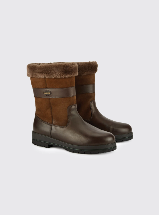 Dubarry Foxrock er den perfekte støvle til hurtigt at hoppe i til afterski på skituren, til skovturen, til jagt eller selvfølgelig hvis man skal ud til hesten eller gå med hunden. Foxrock er en kort støvle med Gore-tex og super lækkert indfor i faux-fur, som ligner pels og luner lige så godt som det hygger. Med disse støvler går du vinteren i møde med både varme og tørre fødder! At de også er super cool til det klassiske look, det er jo bare et plus! Gore-Tex gør støvlen vandtæt også på sigt samtidig med at den er åndbar. Læderet er ydermere det som Dubarry kalder DryFast-DrySoft vandtæt og åndbart læder. Sålen er god PU-gummisål.Stropper indvendigt gør det nemt at trække støvlen på.