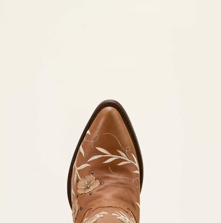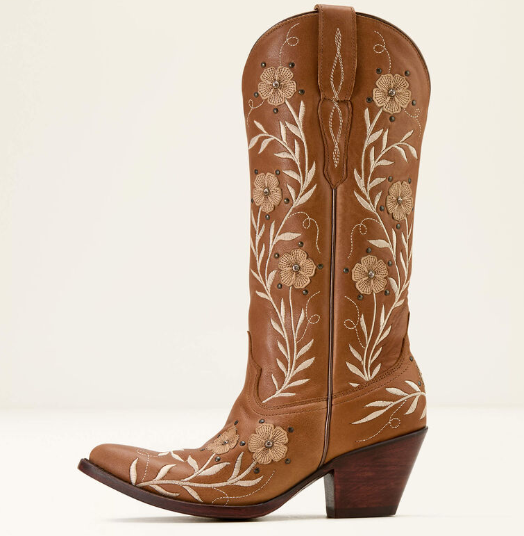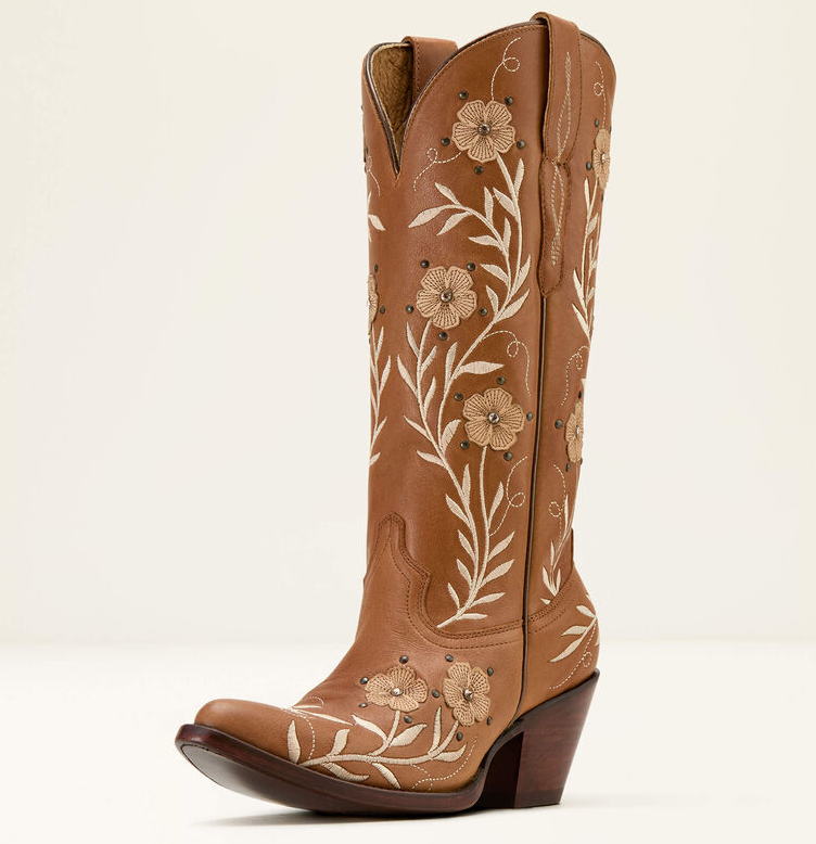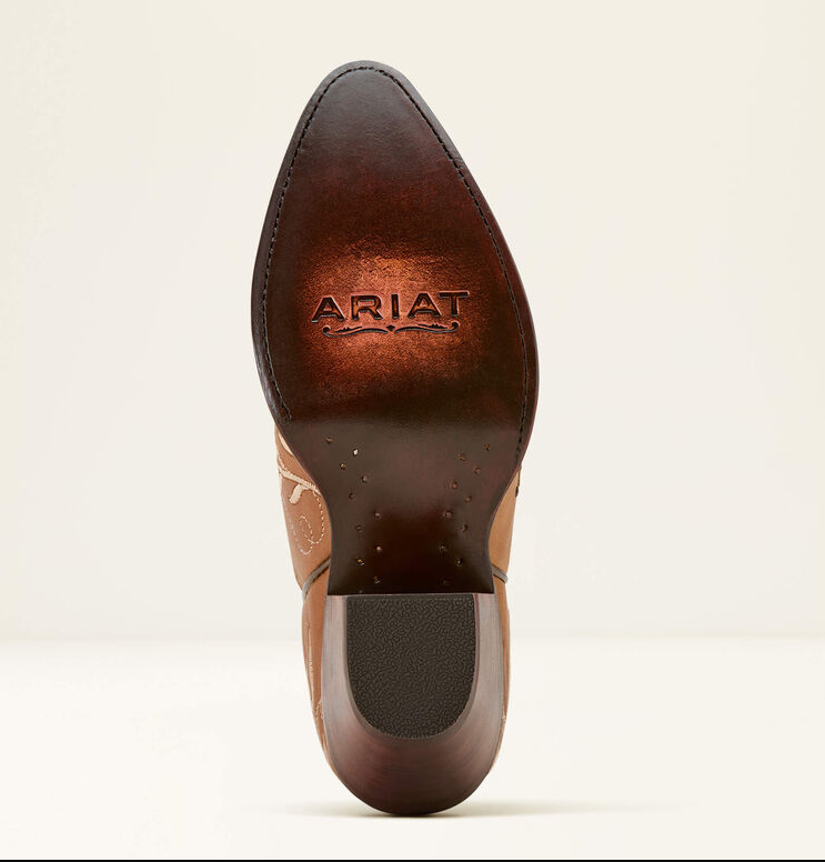 TId til romantik? Ariat Romance er den ultimative dressy western støvle om det er til linedance eller byturen eller endda til jobbet, for den er super at have på. Disse støvler vil få masser af blikfang. Disse støvler er unikke og velegnede til unikke begivenheder, da de har de fineste detaljer man kan ønske sig. Snuden er Ariats J-toe som er spids og rund. Sålen er med Ariats ATS® teknologi som giver ergonomisk støtte og affjedring. Sålen er Goodyear læder konstruktion og kan omsåles hvis de bliver danset tynde. Vegetabilsk behandlet læder, og støvlerne er håndlavet i Mexico. Læder fra inderst til yderst.