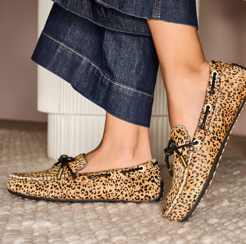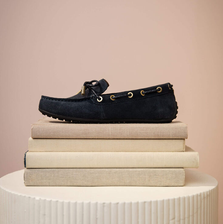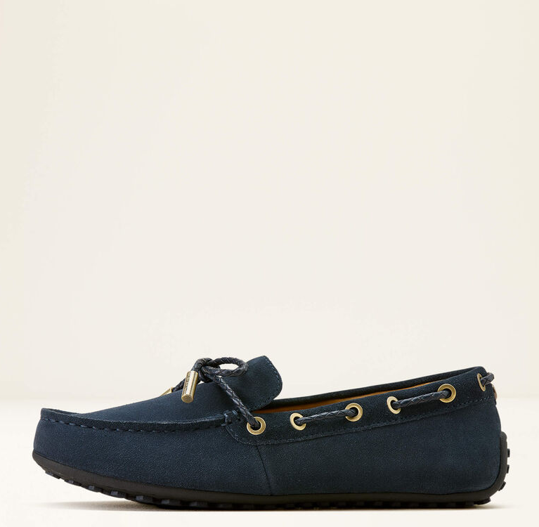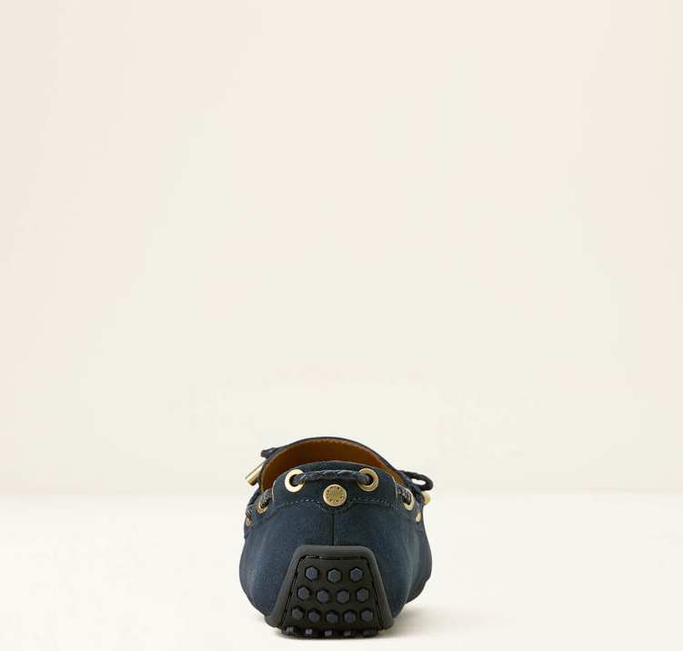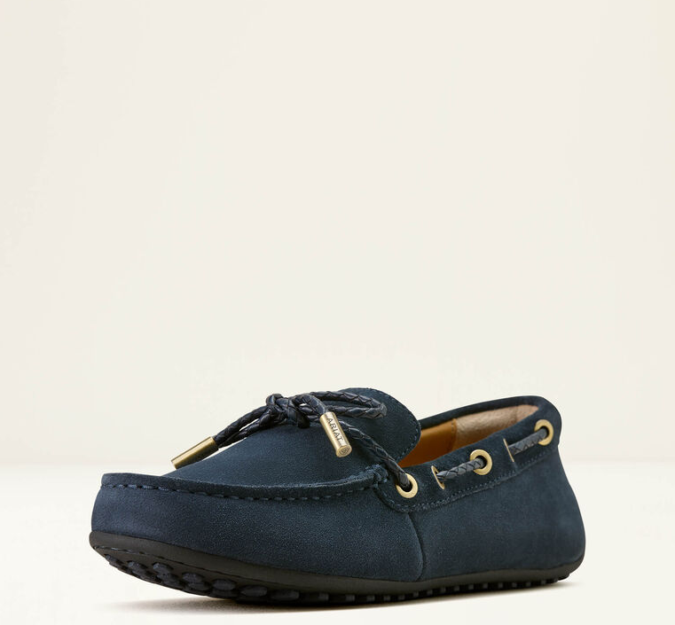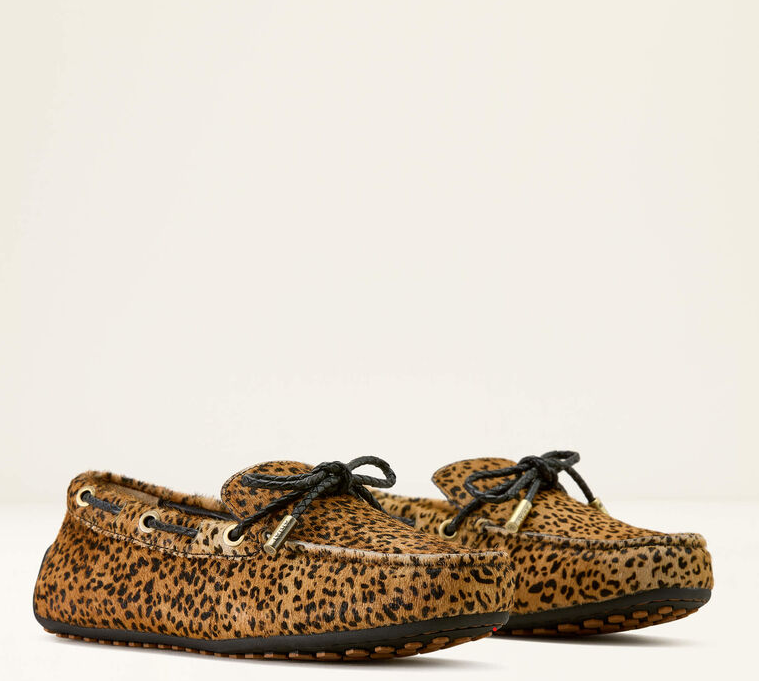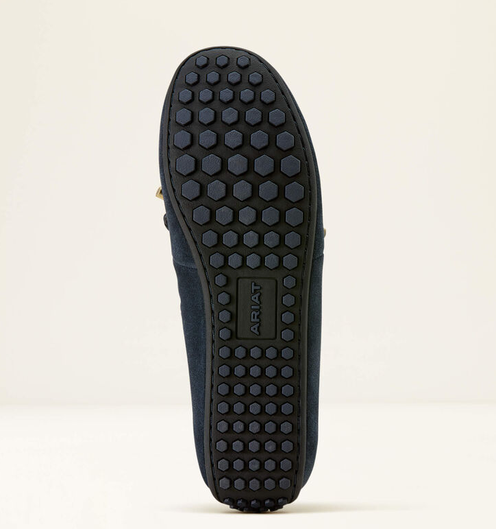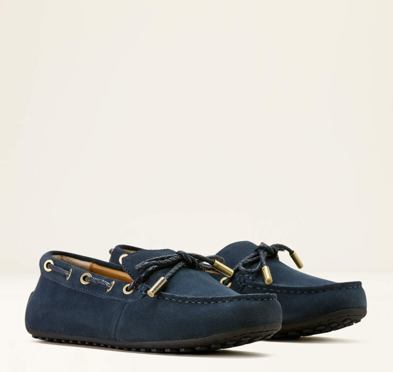 Lad os introducere Ariat Margot Driving mokkasinerne, som lige nu haves i navy suede eller i en version med lidt mere vildt udtryk i form af Mini Cheetah Hair on (imiteret gepard hår). Disse mokkasiner har en smule sejlersko DNA i sig kombineret med seriøse strejf af Ariats endeløse ikoniske komfort. Mokkasinerne er super fine, lette og ekstremt behagelige. Du kan bruge dem overalt - hjemme, i haven, til byturen, til gåturen, på ferien (genial som rejsesko). Sålerne er eksklusive Duratread™ såler som kombinerer holdbarhed med flexibilitet.