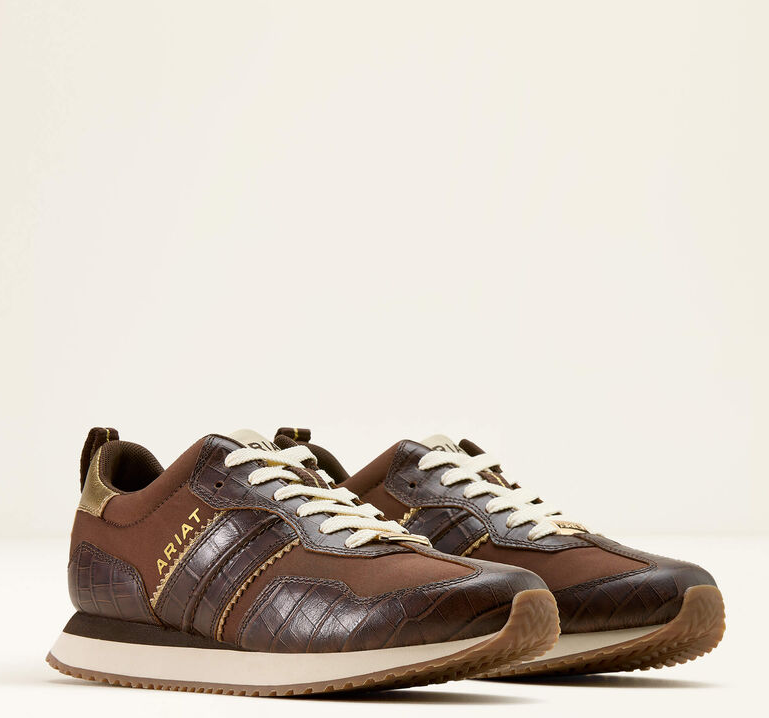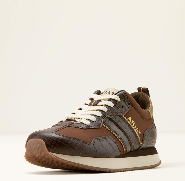 Ariat Ranch Runner sneakers er en smart og behagelig tilføjelse til din garderobe. Geniale sneakers til din hverdags garderobe eller til rytterfesten måske? Ranch Runners er med en god stødabsorberende inderdsål og en let midtersål (Ariat Eva midsole). Udvendigt finder du en holdbar sål med Duratread™som er både fleksibel og robust. Ranch runner er sammensat af flere materiale inklusive læderdetaljer og åndbart mesh inderfor.