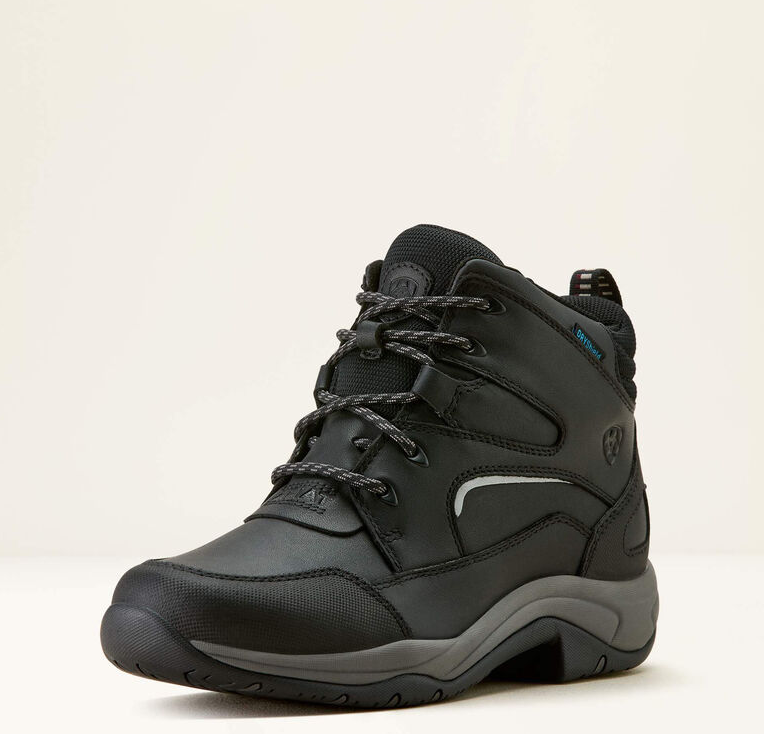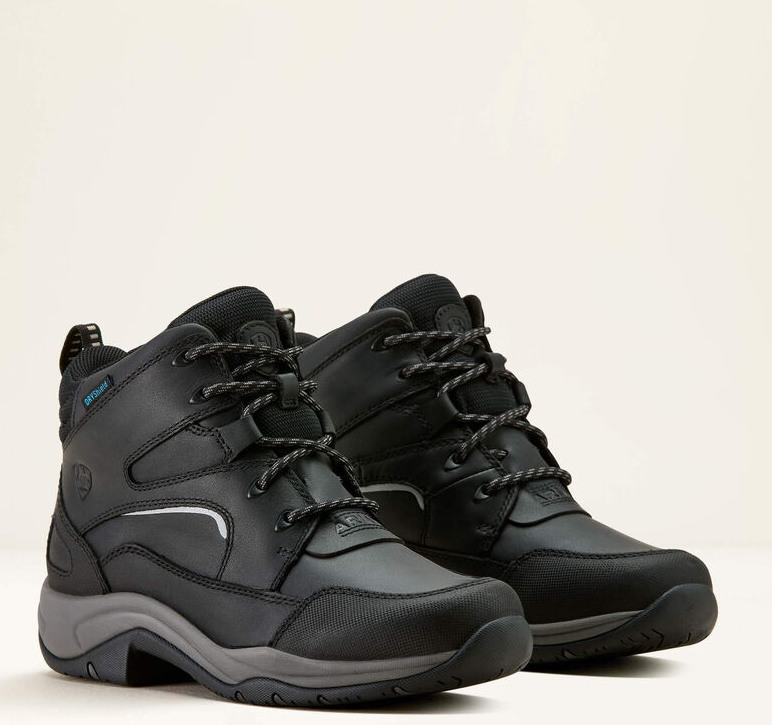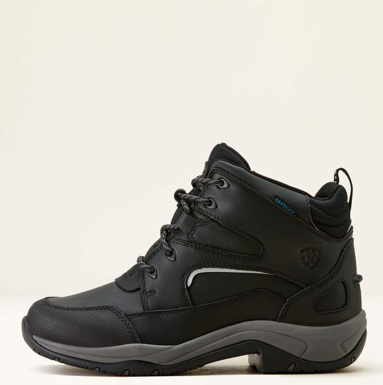Ariat Telluride H2O er en populær støvle hvadenten det er til stalden eller vandreturen. Vi har sågar kunder der vælger denne støvle til rideferien, hvis de for eksempel skal kunne vandre meget samtidig med at de rider i naturen. Telluride II H20 er en populør støvle fra Ariat, som er udviklet til at give enestående støtte og præstation i sadlen samtidig med at du vil elske at have den på til fods også. Ydersiden er fremstillet af vandtæt, olieret kernelæder og støvlen har en vandtæt membran, så dine fødder forbliver tørre, varme og komfortable selv i det værste vejr. Telluride at åndbar og med svedtransporterende foring. Sålen er Ariats stødabsorberende EVA midtersål, og resten af sålen er den populære sål med ATS fodsengsteknologi og Duratread sål, som giver fantastisk komfort og stabilitet.