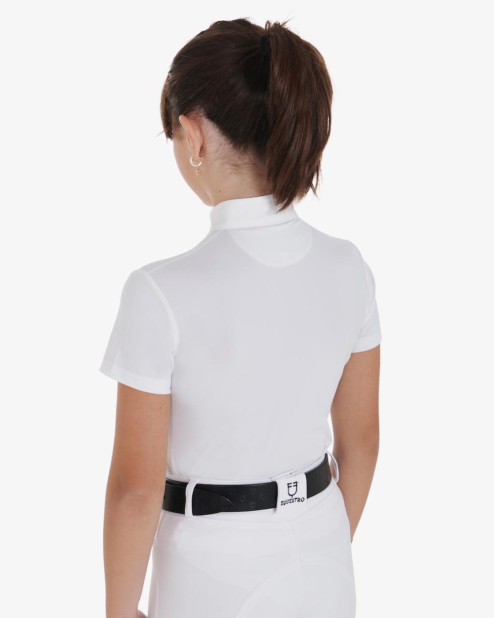 Equestro Lusineh slim stævnepoloskjorte til piger. Skjorten er lavet i et teknisk materiale med stretch, åndbarhed og antibakterielle egenskaber, så den giver den bedste oplevelse at ride i. Den lukkes med lynlås fortil og har UV-beskyttelse.