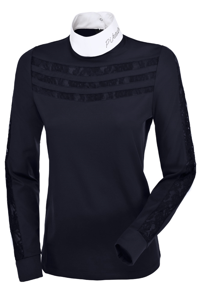 PIkeur Adelina stævnebluse er en meget flot stævnebluse med elegante detaljer. Materialet er svedtransporterende og behageligt. Pikeur Adelina er en anvendelig bluse som sagtens kan anvendes til hverdagsbrug også idet materialet er så praktisk og teknologisk. Adelina er fra Pikeurs SS19 kollektion.