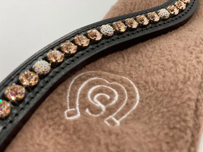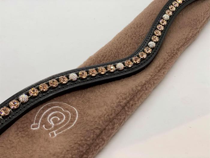 Dette specialdesignede pandebånd fra OS er buet i sort læder og med 8 mm sten i silk og desuden 6 stk af de nye smukke Pavé krystaller. Silver fittings. En smuk smuk farvekombination - enkel og feminin men samtidig virkelig klassisk med et lille strøg af lyserød. Kan bestilles i andre farver og størrelser.
