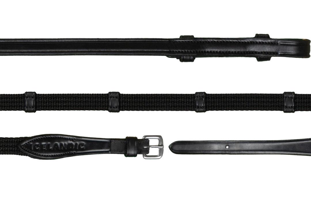 Dyon Icelandic stoftøjler med stoppere i 1/2" bredde. Smalle stoftøjler i god kvalitet med lækkert læder, tone-i-tone syninger, franske hager og spænde i rustfrit stål.