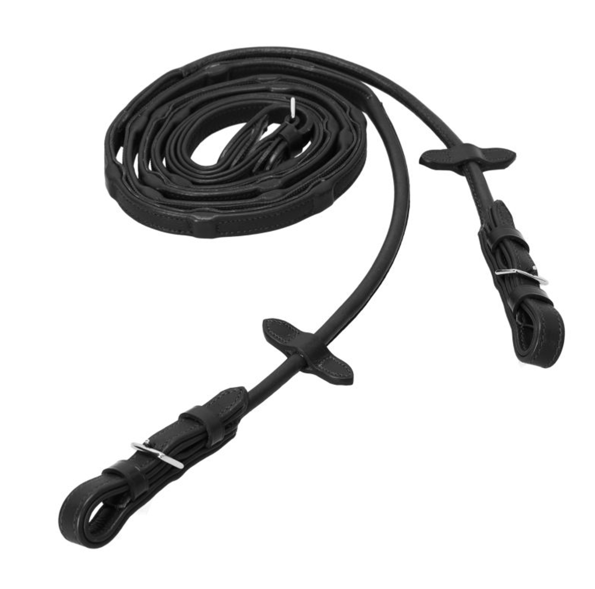 Schockemöhle Durasoft Grip tøjle i rundsyet læder er en virkelig lækker tøjle - den er blød og har stoppere indeni læderet og så har den gummi grip på den ene side. Her får du både en tøjle som er lækker og behagelig at holde på - samtidig med at dine hænder ikke glider under ridtet. Denne tøjle er med rundsyet læder og tøjlen har en "tear-resistant" nylon kerne. Skal man ikke bruge stopperen på tøjlen, kan den blot klippes af.