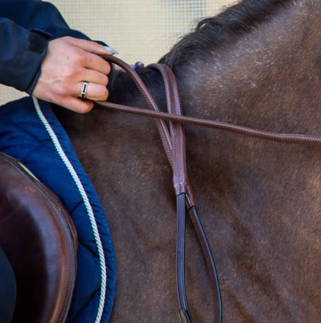Gummitøjle med martinggale stoppere som passer til trenserne i Dyons kollektion. 1/2" i bredden, blød gummitøjle med godt grip.