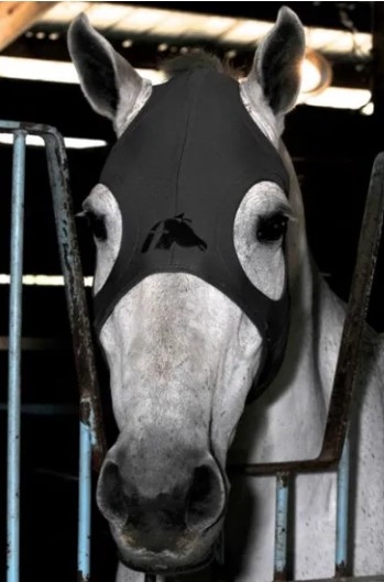 Fenwick masken er en hjælp til din hest hvis den stresser i forskellige situationer. Denne maske lukkes med karabinhager under kinden og ingen ører.