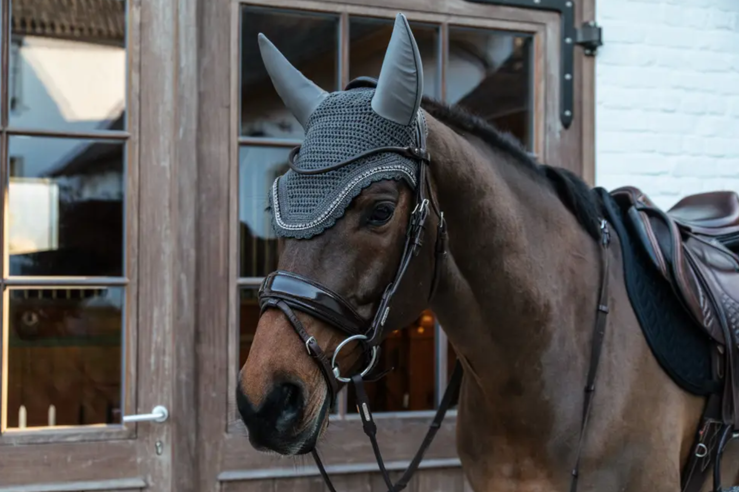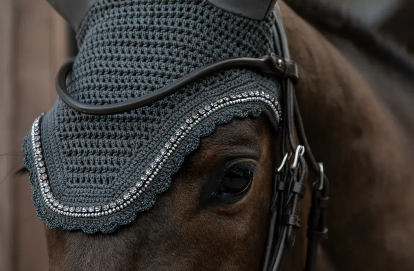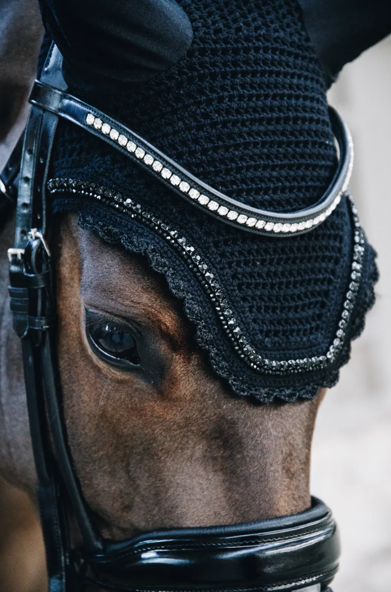Kentucky Fly veil Wellington Stone & Pearl med normale eller soundless ører - her får du den ultimative hut til din hest! Flot lige skåret og med fine udsmykning på den mest stilfulde vis med sten og perler alt tone i tone med hutten. Kentucky Horseware laver hutter med super god pasform. Er hesten lidt sensitiv eller følsom over for lyde, så kan det være en god ide at ride med en "lydtæt" hut som dæmper lydindtrykkene. Denne flotte hut fra Kentucky kan også fåes i sort, navy og brun. Soundless hutterne findes ind til videre kun i str full.