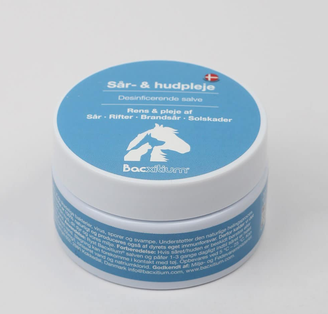 Bacxitium® eliminerer skadelige bakterier og understøtter den naturlige helingsproces. Indeholder et 100% naturligt aktivstof som også bliver produceret af dyrets eget immunforsvar. Bacxitium® er både virksomt, mildt og smertefrit i brug.