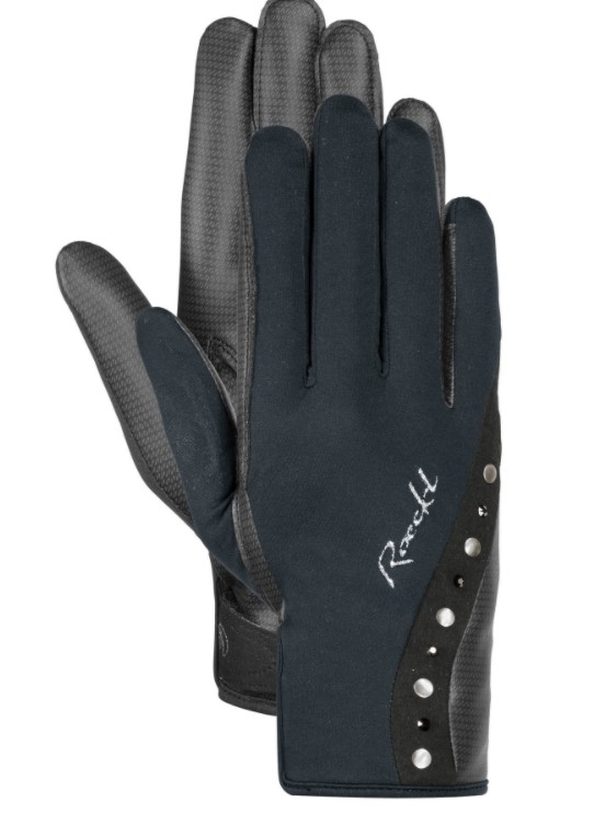 100 % vindtæt og åndbar og derfor falder den nye Jardy handske fra Roeckl ind under kategorien vinterhandsker. På kolde blæsende dage hele året kan du dog glæde dig over denne handske! Og det gør jo heller ikke noget, at Jardy bidrager med lidt ekstra sparkle i den kolde tid. Jardy er en elegant og eksklusiv handske fra Roeckl - den er teknologisk og med super fit. Materialet føles som "a second skin" og er både lunt, vindtæt, behageligt, med god grip og god forbindelse mellem rytterens hånd og tøjlen. Handsken er virkelig feminin og dette understreges af pynten med nitter og swarovski på oversiden. En klassisk velcro lukning ved håndledet. En ultra elegant og høj teknologisk handske.