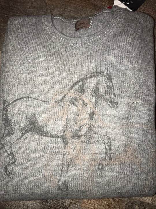Animo Saci womens wool sweater: En meget lækker og blød uldkvalitet gør denne sweater et must-have til hesteelskere i alle aldre! Animo Saci uld sweater er i en lækker blød kvalitet som er tilpas kraftig til at den kan holde rytteren, forælderen eller ridelæreren lun på de kolde dage i ridehallen og stalden. Animo Saci er udsmyttet med hestemotiv samt Animo logo i klare sten ved venstre bryst. Denne uld sweater fås i en beige safari farve, lys grå samt en flot pink farve. Animo er italiensk og størrelserne er derefter, så man bør vælge et nummer større end man plejer at bruge.