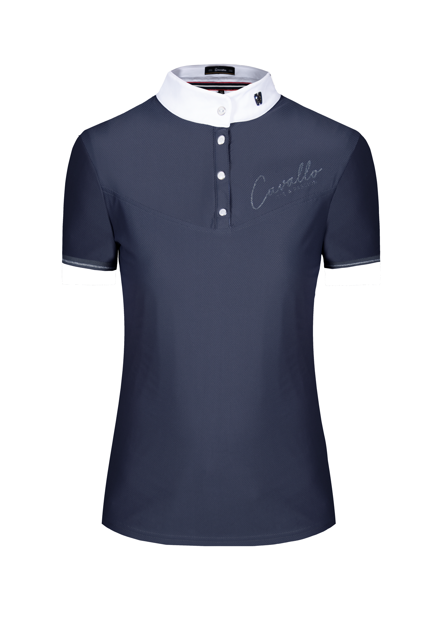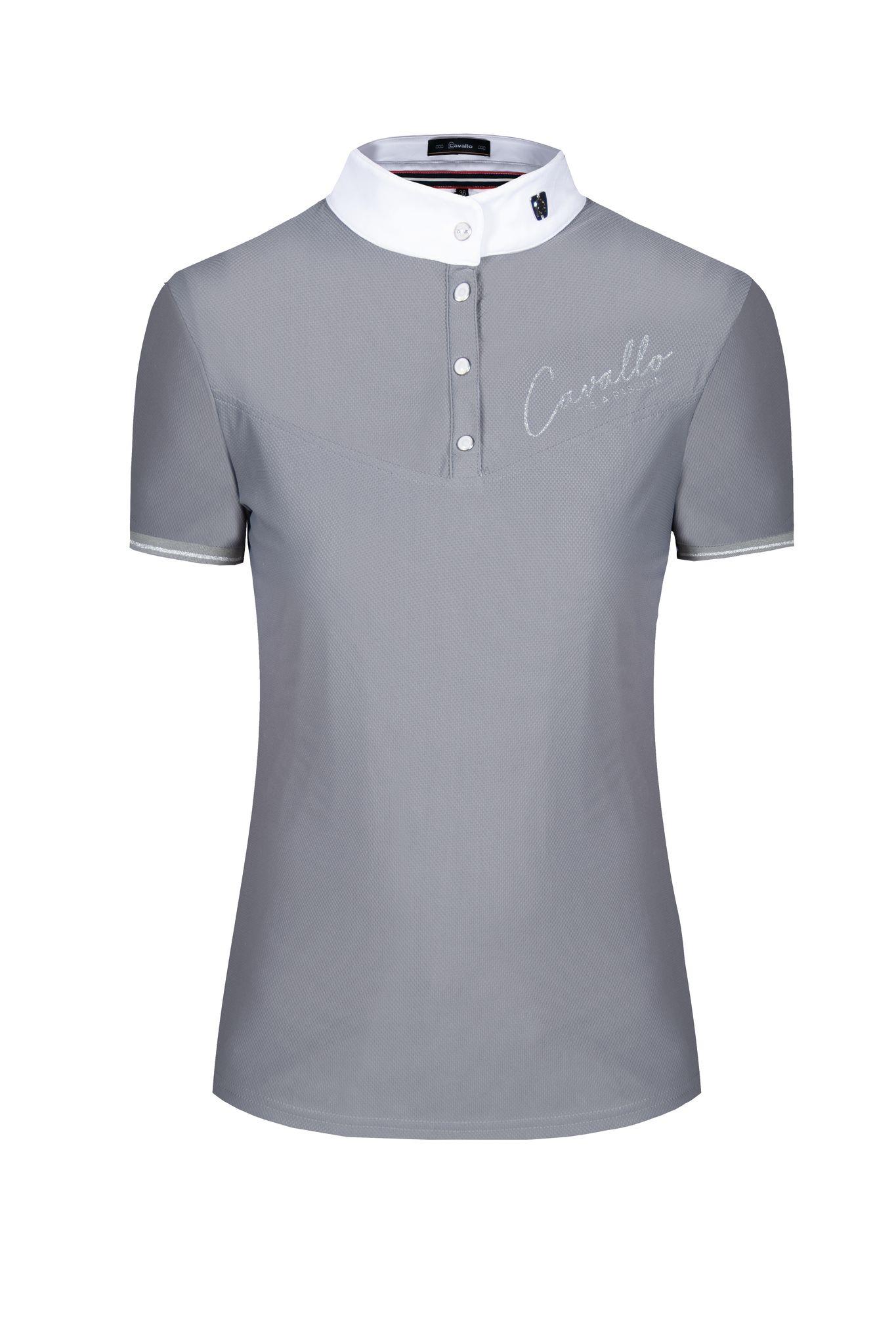 Har du opdaget Cavallos lækre toppe? Cavallo arbejder med super lækre materialer og sporty styles - og priserne er ikke til at klage over. Cavallo Pamira showhirt er en elegant og sporty ridebluse. Cavallo Pamira har flot pasform og materialet er blødt og åndbart jersey. Cavallo logo ved brystet og en flot stilfuld detalje bagpå, hvor der en stribe i kontrastfarver ned ad ryggen. Pamira kan du bruge både til stævner og til hverdag. Cavallos størrelser er tyske, og du skal bare vælge den størrelse, som du normalt bruger.