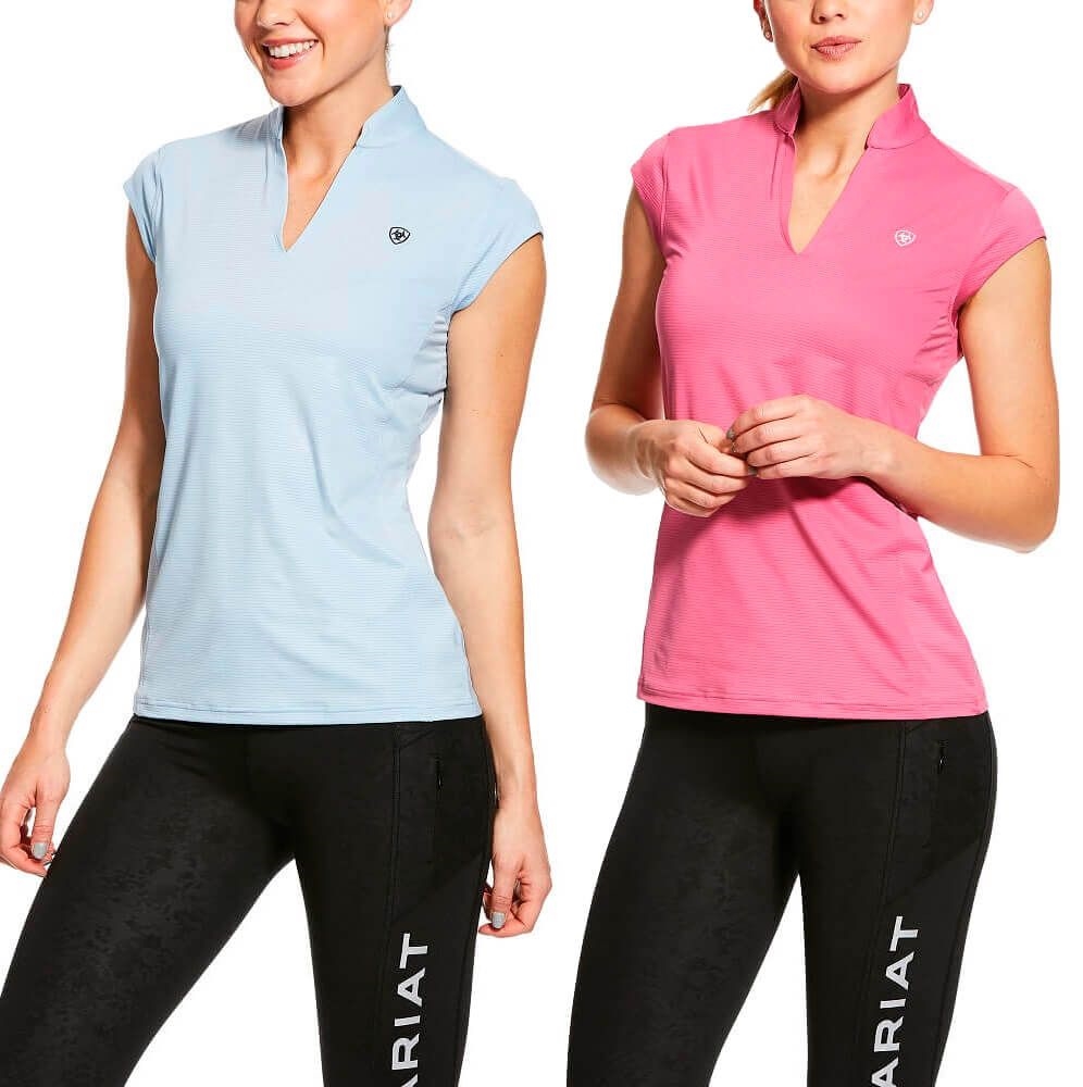 Ariat Cambria er en bluse i lækker teknologisk jersey som kan holde dig afkølet, tør og solbeskyttet hele dagen. Den bløde og let åbne halsudskæring er virkelig fin og elegant - men samtidig også meget sporty. Ariats AriatTEK® Heat Series teknologi giver din hud en følelse af nedkøling selv under træning. Den er hurtigttørrende så fugt/sved hurtigt tørrer. Materialet har solbeskyttelse med UPF rating på 50+ som beskytter mod de skadelige stråler fra solen. Materialet er virkelig behageligt, pasformen er flot, og looket eksklusivt med de små skrå ærmer og vandrette tone-i-tone striber. Vi er sikre på, at du vil bruge den top til ridning, træning, gåture og afslapning. Og vi synes at den blå klassiske "cashmere blue" er flot til virkelig mange farver - sort, brun, navy, kaki, beige, grå - you name it. Er du lidt mere vovet, og til lidt mere farve, så er den flotte pink "heather" farve virkelig fin!