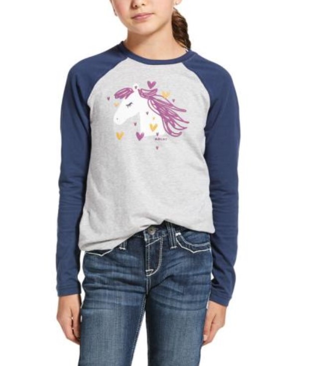 Ariat har hvert efterår nogle forskellige t-shirts. Denne My Love t-shirt fra efterårs kollektionen 2020 er i den sædvanlige bløde kvalitet men lidt ekstra lækker fordi motivet foran har et virkelig flot og lækkert print. Den hedder "My Love" - og ja, det er jo det ponyen og hesten er for rigtig mange ryttere- den store daglige kærlighed. Se størrelses skema billede nr. 2