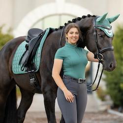Kortærmet træningsbluse fra LeMieuxs ActiveWear og del af deres SS21-kollektion (Short Sleeve Base Layer). Denne træningspolo er lavet af et super blødt og lækkert stof, der er svedtransporterende og åndbart, så den er suveræn at ride og træne i. Materialet er tætsiddende, men "4-way" stretchy, så den er behagelig og flatterende i sin pasform.