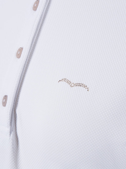 Animo Biarritz polo til damer i deres tynde og bløde polomateriale. En fantastisk komfortabel og elegant polo til den daglige træning eller lignende. Poloen er simpel, men pænt skåret med en fin krave og Animo-logo af tone-i-tone swarovskisten på brystet.