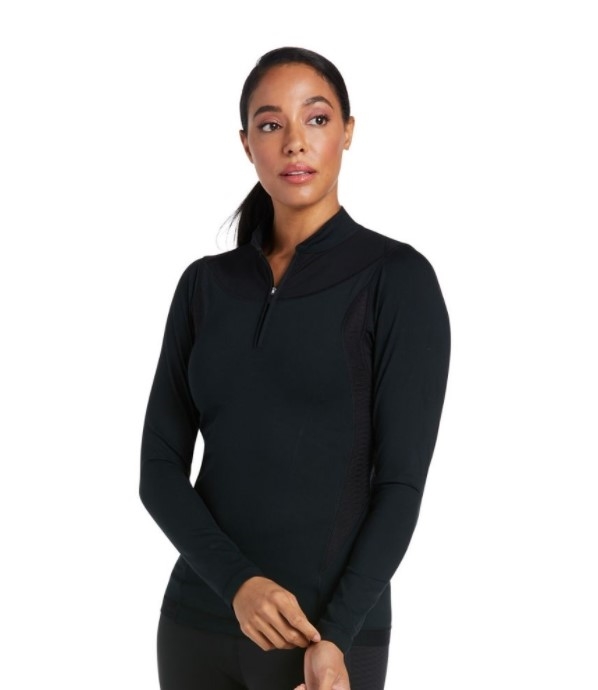 Ariat Ascent 1/4 zip baselayer er en super lækker bluse, som er en del af den nye Ascent serie fra Ariat. Ascent er Ariats nye træningstøj til rytteren. Ascent er lig med et smart og sporty look kombineret med materialer som er åndbare, fugt og temperaturregulerende.