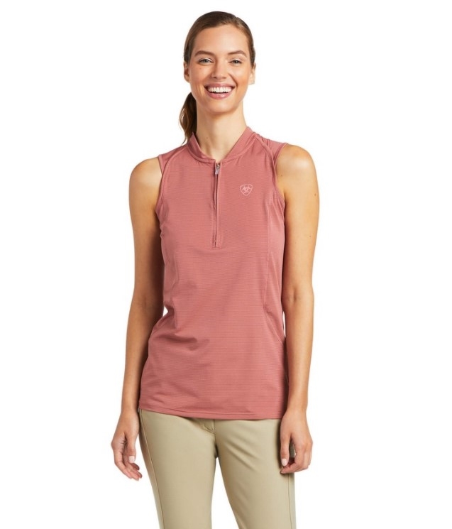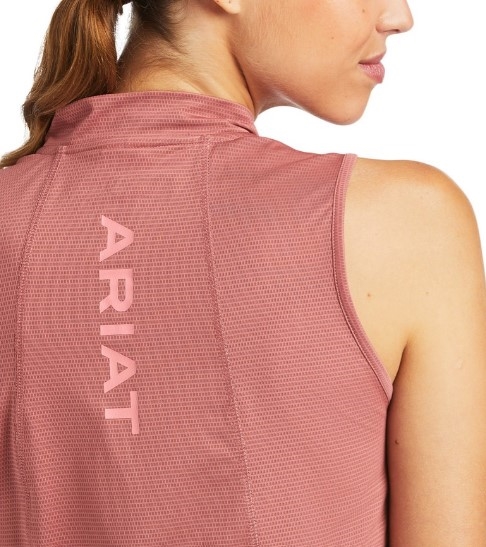Ariat Hailey med 1/4 zip og uden ærmer. En så fin top til de varme dage. Materialet er let og med jacquard mønster. Det er hurtigtørrende og hjælper dig til ikke et bliver alt for overophedet under træning. Super pasform og masser af bevægelighed. Selve materiaelt har UPF 45. Genial top til ridning eller træning på de varmere dage.