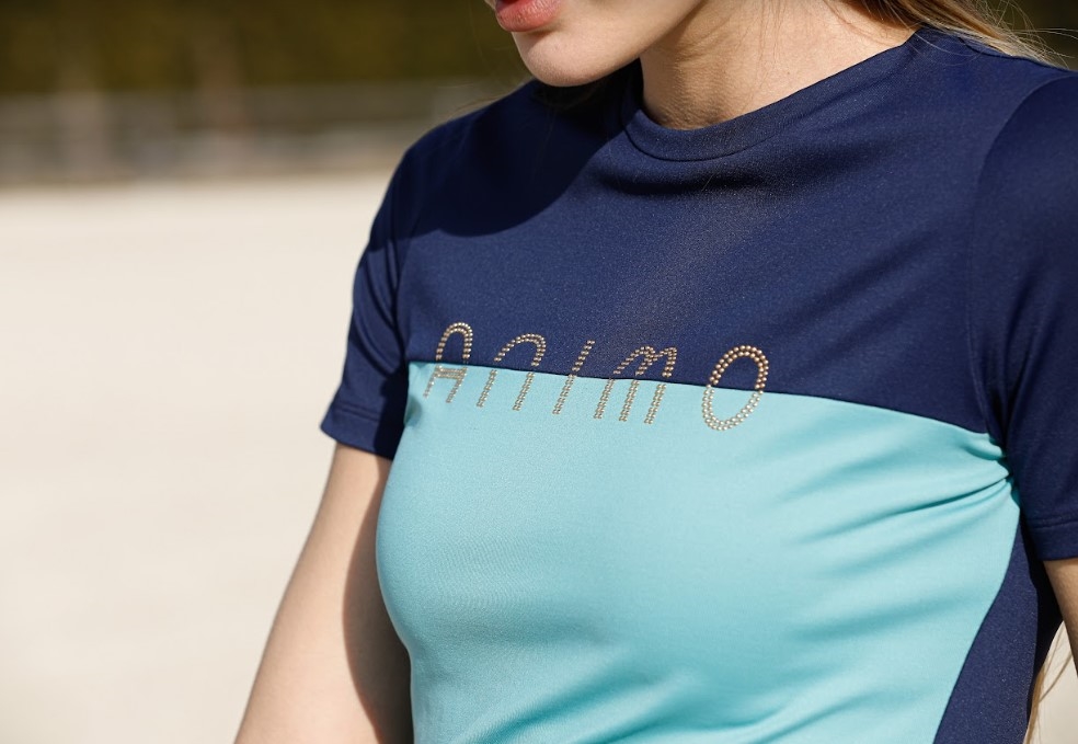 Animo Freddy er en super fed funktions t-shirt med korte ærmer. Materialet er som en drøm at have på. En meget behagelig t-shirt i et lækkert teknisk materiale som føles som "another skin" - du kan nærmest ikke mærke du har den på. Fine detaljer- den er tofarvet med navy base og så enten i den lidt terracotta farvede Sienna eller med den lysere blå Lago. Animo logo i sten over brystet.