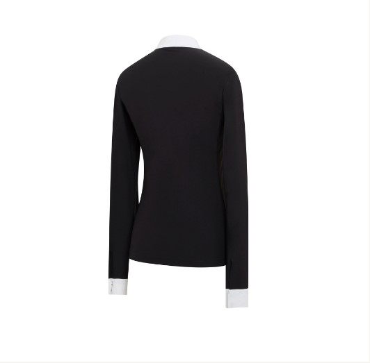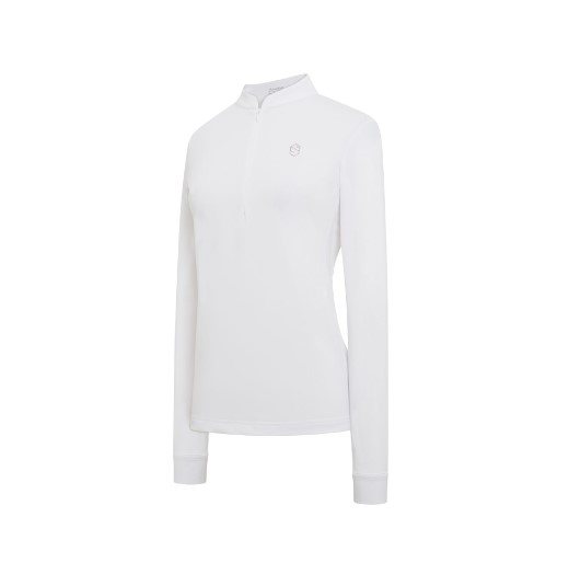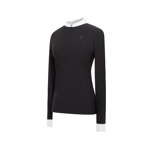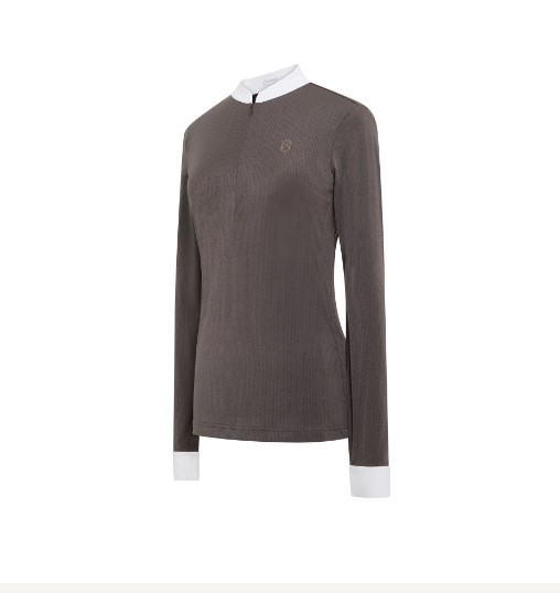 Samshield Louisy er en helt enkel ridebjluse med hvid krave og hvide manchetter. Samshield swarovski logo ved venstre bryst. Samshields ridebluser er fremstillet er noget af det lækreste tekniske materiale der er på markedet. Blødt, stretchy, åndbart og svedtransporterende. Blusen sidder super godt. Vi har tre farvemuligheder - sort og hvid og så den taupe glitter farvede, som har en let glitrende tråd i materialet. Den taupe er med rose gold swarovski.