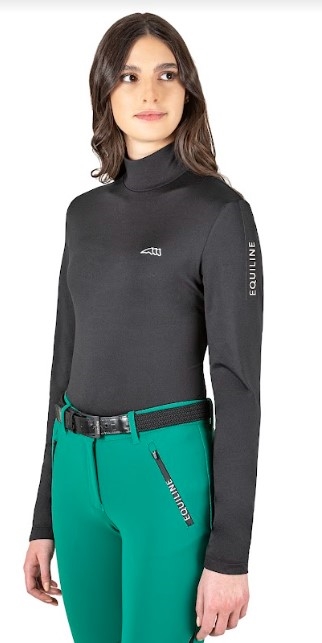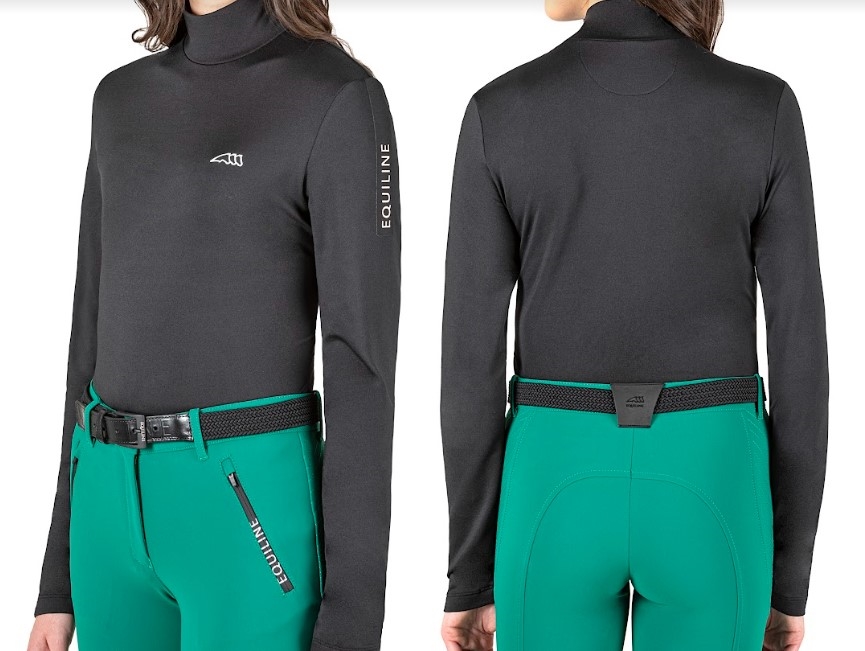 Varm hvid stævnebluse - selvom den er sort på billedet, så har vi den altså også i hvid! Super lækker og lun funktionsbluse fra Equiline. Velegnet inderst hvor den føles blød og lun mod huden. Så behagelig at materialet betegnest "second skin". Indersiden er børstet fleece. En super anvendelig bluse, som er med i Equilines vinterkollektion år efter år. OG NU er den her i hvid, så hvis du er træt af at fryse under stævnejakken til ridestævnerne, så er løsningen her! Der står Equiline på venstre ærme og er logo ved venstre bryst. Behagelig krave luner om halsen.