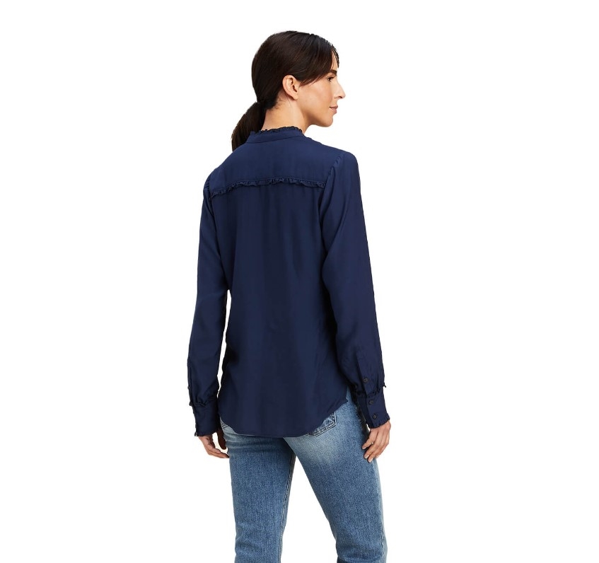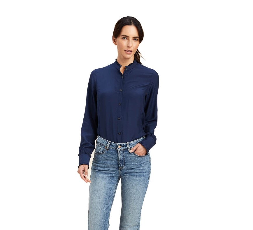 Ariat Country Collection er lækkert og stilrent beklædning til dig som godt kan lide et klassisk "country look". Ariat Clarion blouse er en skøn skjortebluse i lækker let og silkeagtig twill materiale. Super feminine detaljer og smuk pasform - en bluse du kan bruge udenpå bukserne eller nede i bukserne eller til en smart nederdel, med vest eller strik eller en blazer. Hvis du virkelig går ind for stilen, så kan du også sagtens tage den på til ridebukserne og ose af godsejerstil! Der er faktisk ikke noget skjorten her ikke kan bruges til.