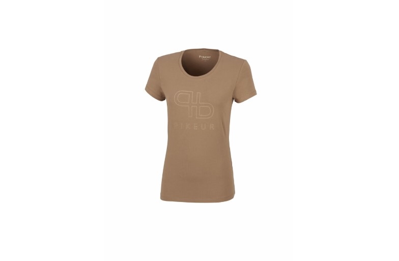 En lækker nyhed fra Pikeur - super fint kortærmet bluse i en lækker bomuldskvalitet. Pikeurs nye logo i gyldne rhinsten matcher super flot ind i den lækre karamel-farve, som denne bluse har. Pikeurs t-shirts er virkelig velsiddende og lækre at have på - hvadenten du bruger den til ridning eller bare til et par jeans.
