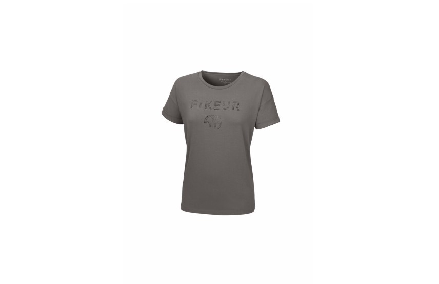 Pikeur Tiene t-shirt i en smule oversized fit som giver et afslappet sporty look. Farven Beluga er flot mørk grå med tone-i-tone rhinsten på. Den sorte har silicone print. En lækker bluse til både ridning og anden træning. Til dig som ikke ønsker at tøjet sidder helt tæt.