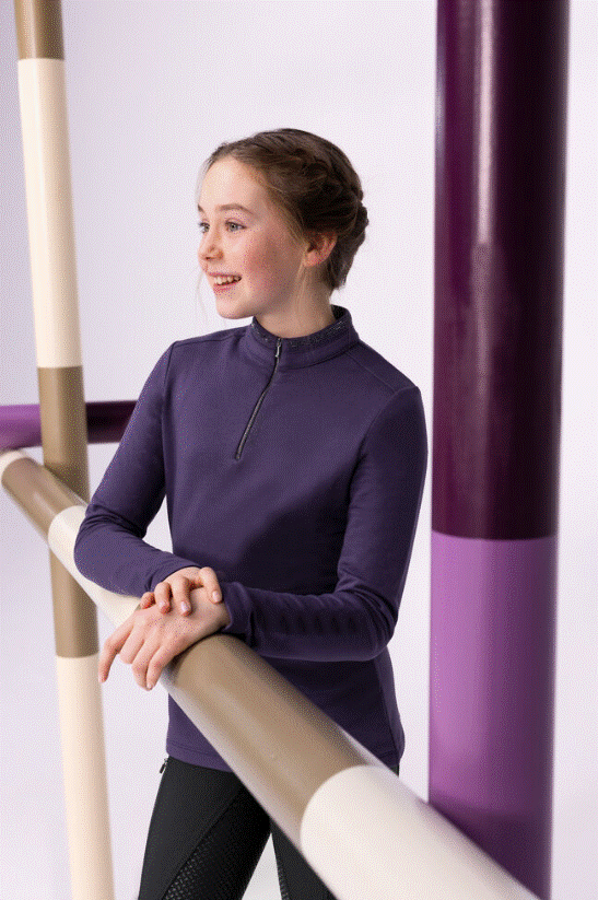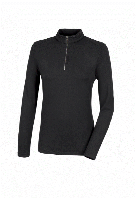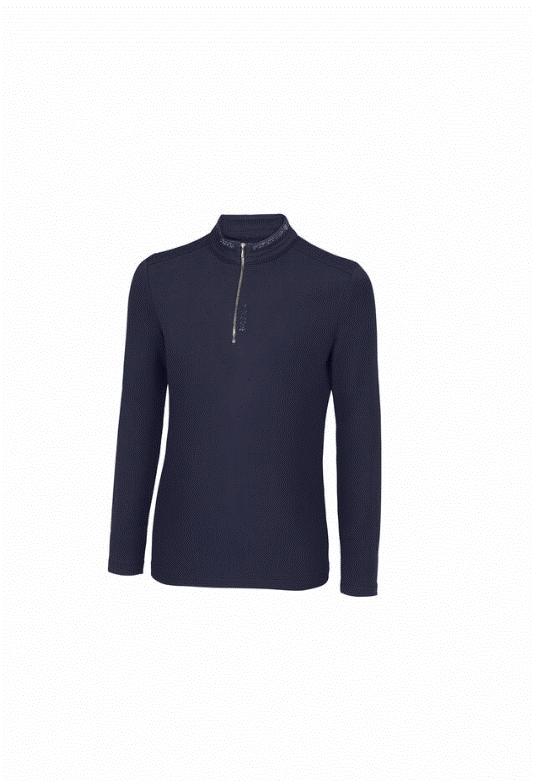 Pikeur Sports zip shirt til børn - en lækker baselayer i meget behageligt og lunt materiale. Blusen kan anvendes alene som en stilfuld langærmet ridebluse eller under en strik, vest eller lignende på de meget kolde dage, hvor den vil bidrage til at holde dig lun og varm. Denne bluse har børstet fleece på indersiden, en robust lynlås foran og tone-i-tone sten pynter den oprette krave samt Pikeur logoet ved lynlåsen og i nakken.